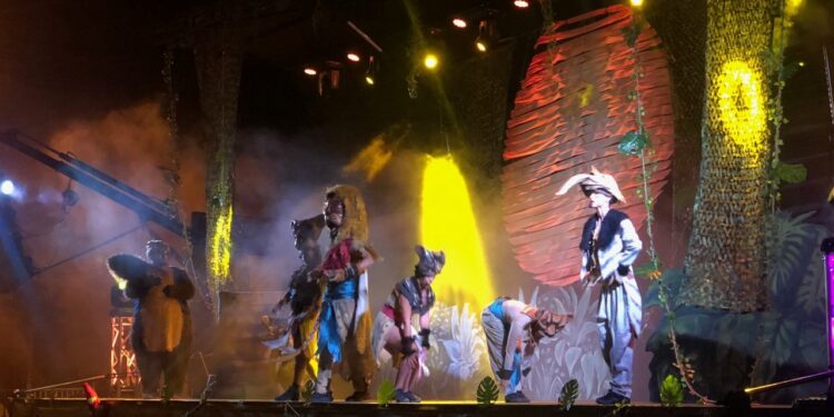Un espectáculo que recreó la conocida historia de ‘El rey León’, en el que los actores interactuaron con los vecinos, que disfrutaron al aire libre y manteniendo en todo momento las medidas sanitarias con la distancia de seguridad establecida por núcleos familiares. Asimismo, los asistentes llevaron su silla cumpliendo así con uno de los requisitos marcados por la organización este año.