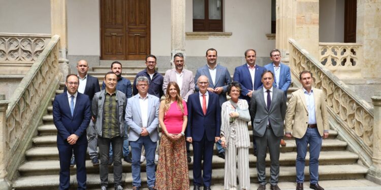 Los alcaldes del alfoz y de los municipios de más de 5.000 habitantes han suscrito esta mañana, junto al presidente de la Diputación de Salamanca, Javier Iglesias, y el alcalde de Salamanca, Carlos García Carbayo, el ‘Manifiesto en defensa de las comunicaciones ferroviarias de la provincia’.