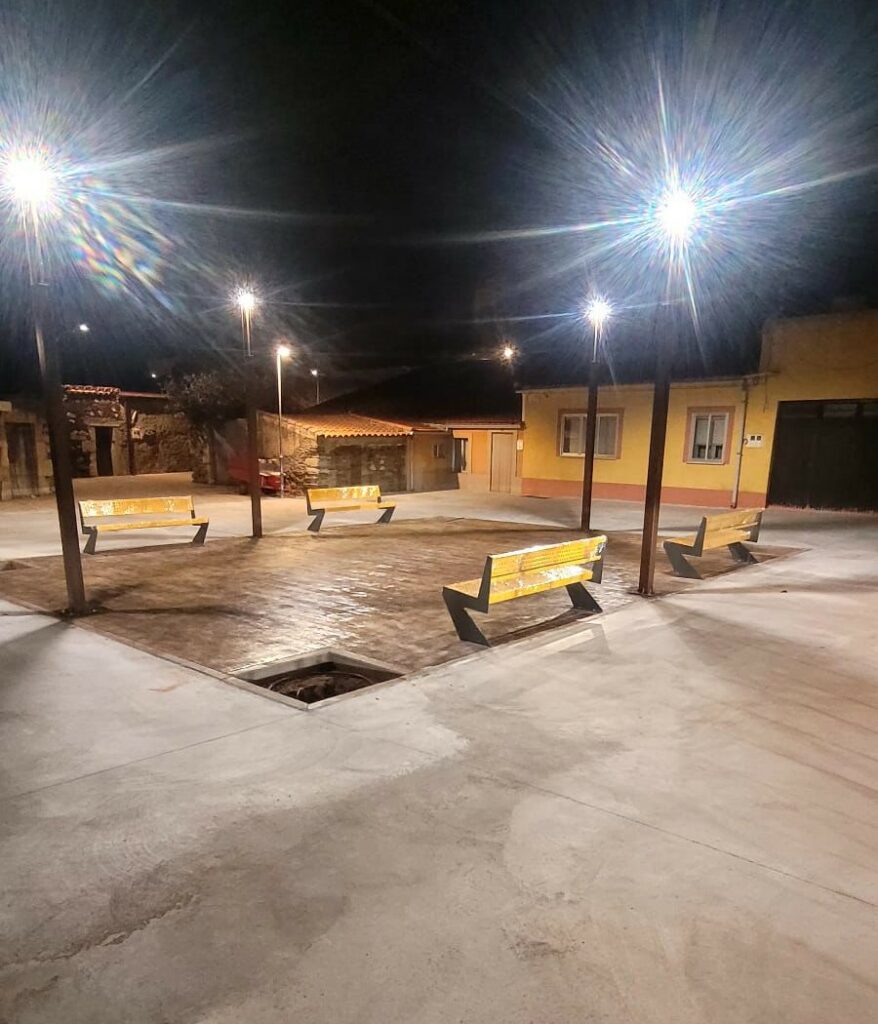 Esta nueva imagen se ha logrado proyectando pavimentos de hormigón semipulido en las zonas circundantes y de hormigón impreso en el rectángulo central. Esta última zona, que será el espacio exclusivamente peatonal, cuenta con unas dimensiones de 8×10 metros y arbolado, mobiliario urbano y una farola led en cada esquina.