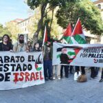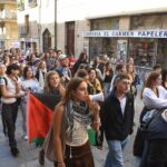 Bajo lemas como este, más de medio centenar de alumnos secundan la manifestación convocada por el Sindicato de Estudiantes con el objetivo de “parar el genocidio palestino y obligar al Gobierno de España a romper relaciones económicas, diplomáticas y militares con Israel”. Esta movilización de estudiantes coincide con la huelga general convocada por los sindicados de trabajadores, llamando a una paralización de 24 horas en todos los institutos y universidades del país.