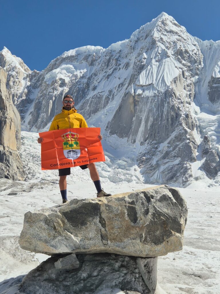 Durante sus viajes lleva la bandera de Carbajosa y la muestra en escenarios tan diversos como montañas remotas o enclaves naturales de gran belleza, transmitiendo de esta manera el orgullo por sus raíces en las publicaciones en redes sociales que realiza tras cada aventura.