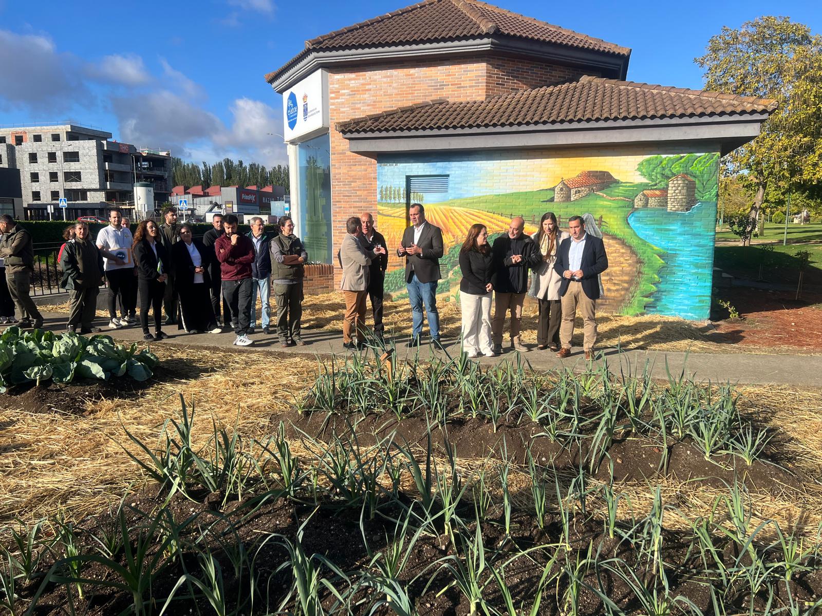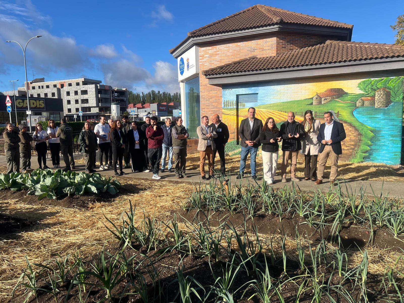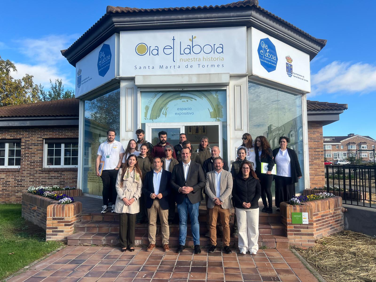 El delegado territorial de la Junta de Castilla y León, Eloy Ruiz, y el alcalde de Santa Marta, David Mingo, acompañados de miembros de la Corporación municipal y los participantes en la AFE, han presentado esta mañana el huerto medieval y el nuevo espacio expositivo ‘Ora et labora, nuestra historia’. Dos originales proyectos inspirados en el Medievo y que han sido posibles gracias al trabajo y la investigación de los 12 alumnos de la AFE ‘Recreatio’ centrada en el sector turístico y en la horticultura.