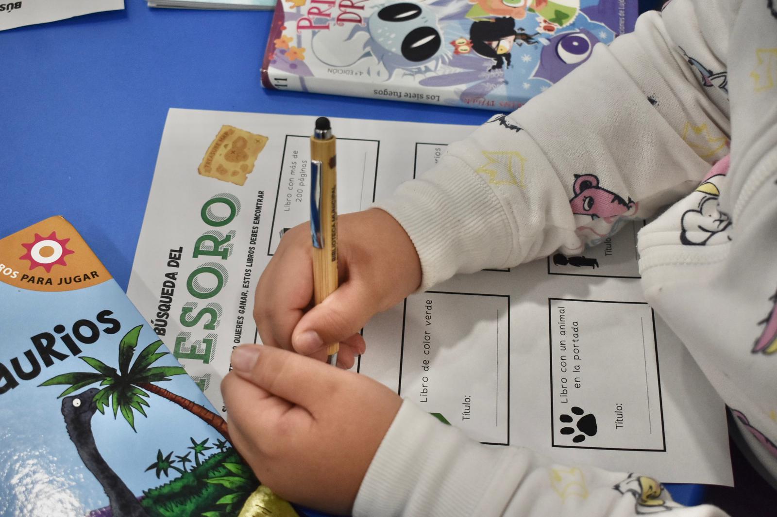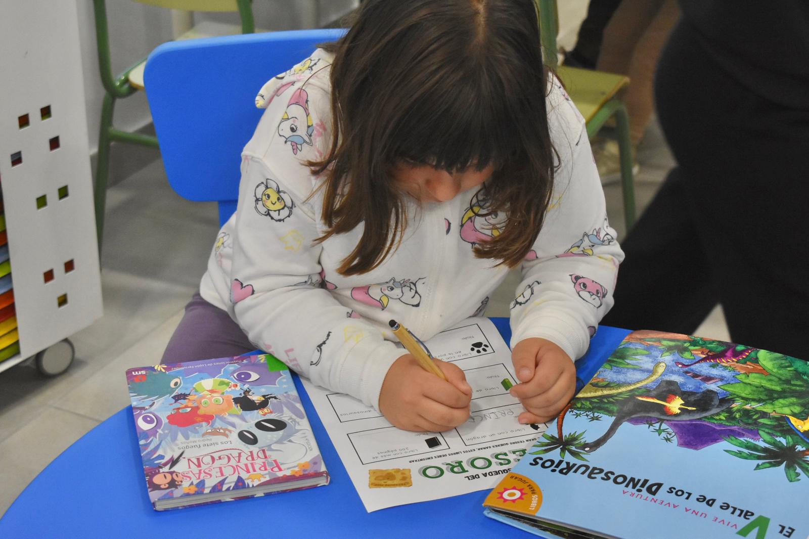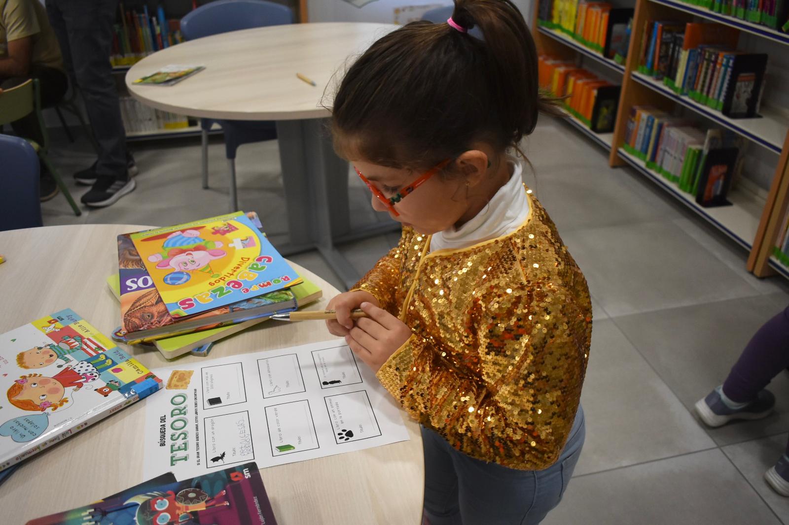 El juego ‘Búsqueda del Tesoro’ ha dado el pistoletazo de salida a la tarde, con una actividad donde una veintena de participantes, tanto niños como adultos, a lo largo de la tarde, han tenido que buscar en la biblioteca libros con diferentes características.