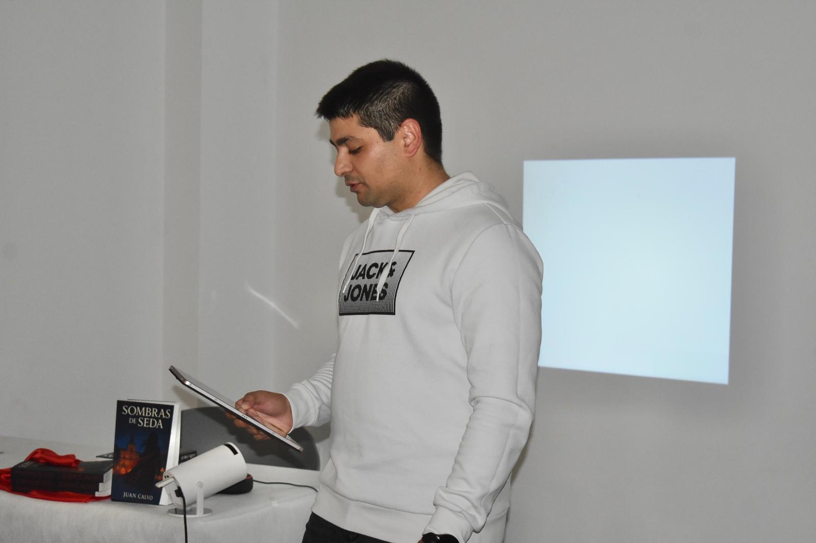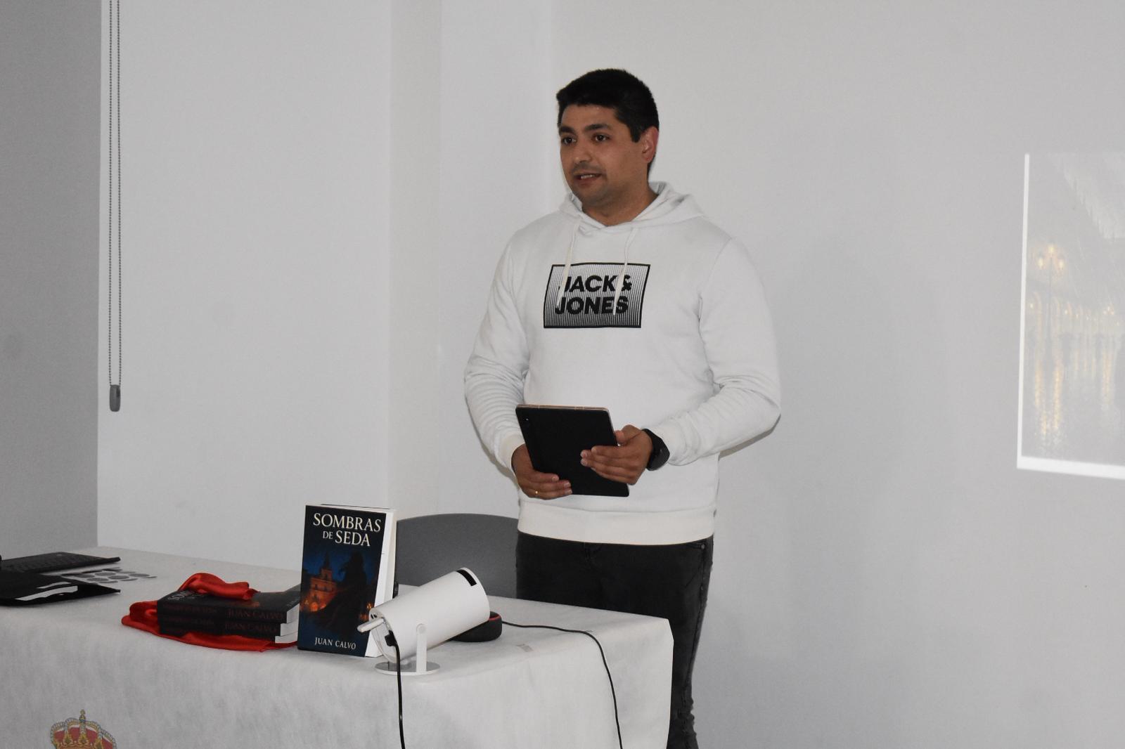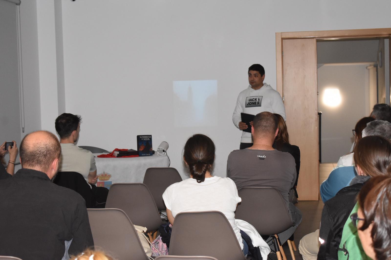 Así, tras la presentación previa realizada por el concejal de Cultura, José María Herrador, a continuación Juan Calvo, ayudándose de emotivas y profundas reflexiones, ha procedido a presentar su primer libro, ‘Sombras de Seda’, ambientada en una ciudad imaginaria inspirada en la capital del municipio, Salamanca. Bajo la atenta mirada de los presentes, entre los que se encontraba la alcaldesa, Victoria Manjón, el artista ha ido descubriendo las claves de su novela, incitando cada vez más a su lectura.
