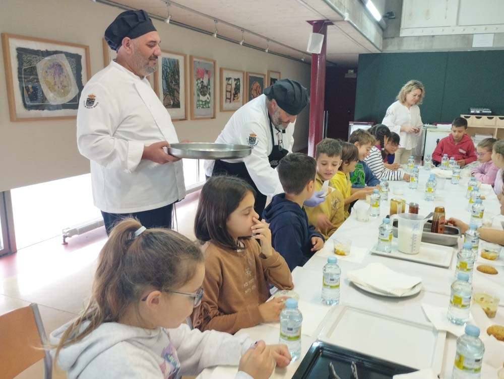 Los escolares de 3º de Primaria de los tres colegios de Santa Marta han participado esta mañana en los talleres de desayunos saludables celebrados en la Escuela Municipal de Hostelería y que se incluyen en las actuaciones prácticas que han iniciado los alumnos del Programa Mixto de Formación y Empleo AFE ‘Catering Social’, puesto en marcha gracias a la financiación de la Junta de Castilla y León a través del Ecyl.