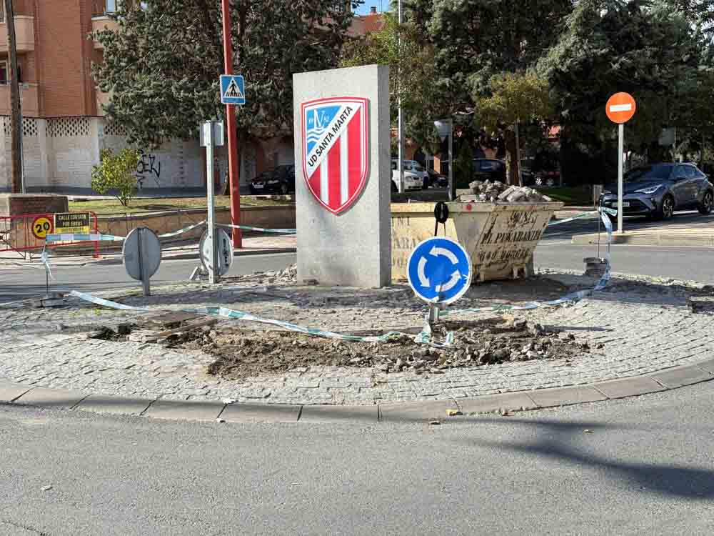 El Ayuntamiento de Santa Marta de Tormes ha comenzado las obras para la mejora de la rotonda de la Unión Deportiva Santa Marta. Una actuación provocada por el hundimiento de parte de los adoquines y de la base de la rotonda por el paso de vehículos pesados como camiones o autobuses. La obra consiste en el levantamiento de los adoquines, la preparación del terreno para extender hormigón y la posterior colocación, de nuevo, de los adoquines y bloques.