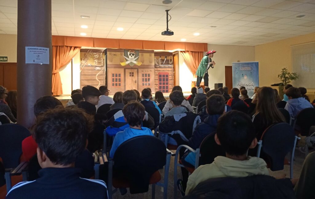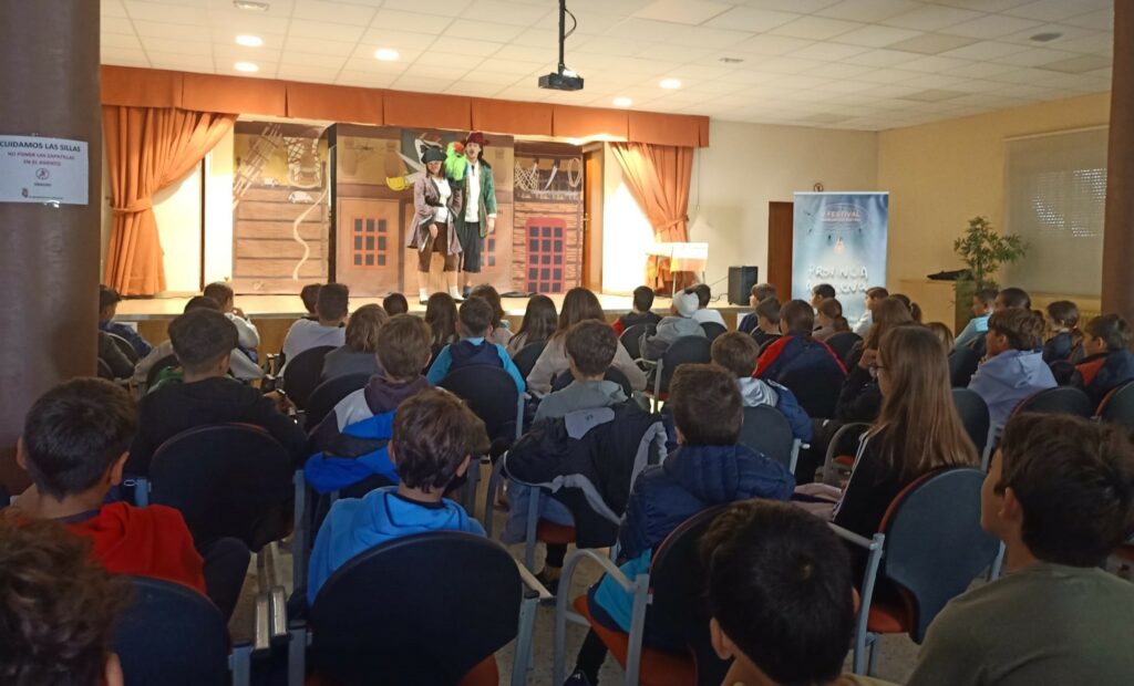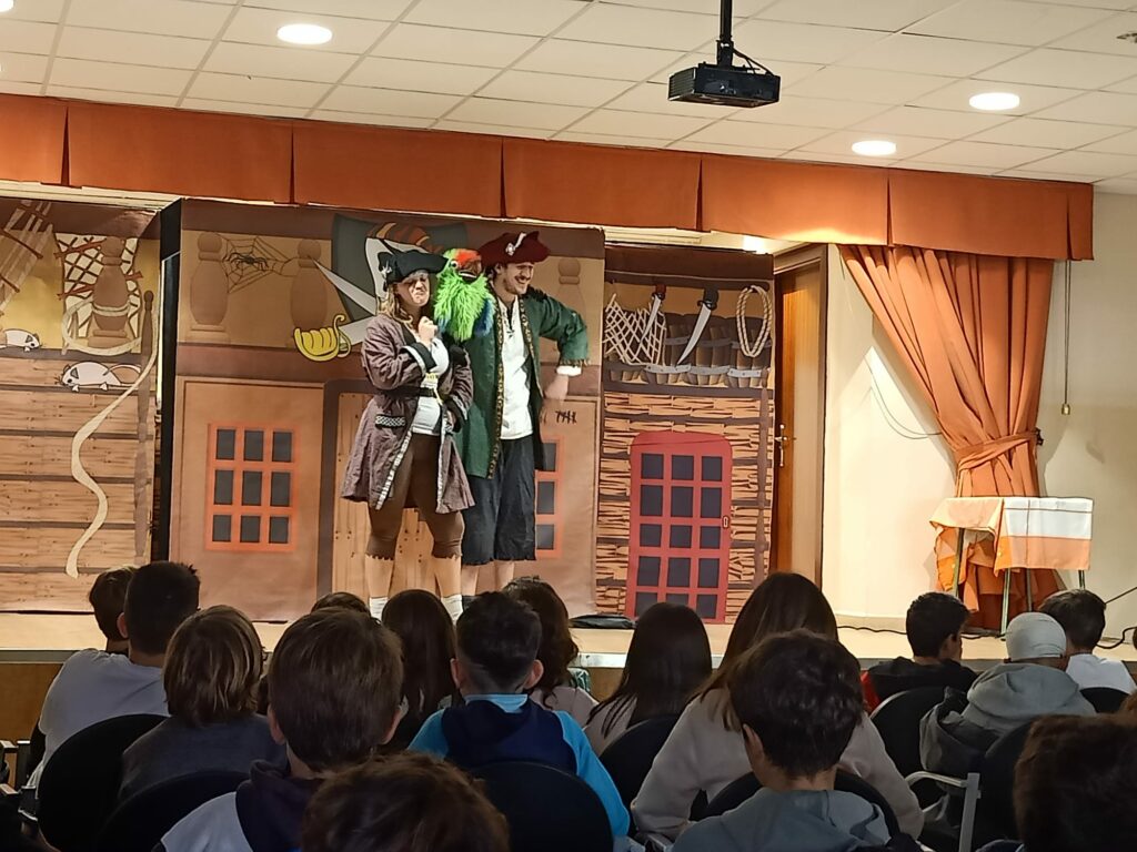 Los alumnos de 3º, 4º, 5º y 6º de Primaria dl CRA La Flecha han sido los destinatarios y espectadores de la obra de teatro en inglés ‘Treasure Island’, de la compañía Face to Face. Una representación que han disfrutado en dos pases que han tenido lugar en el salón de actos municipal.