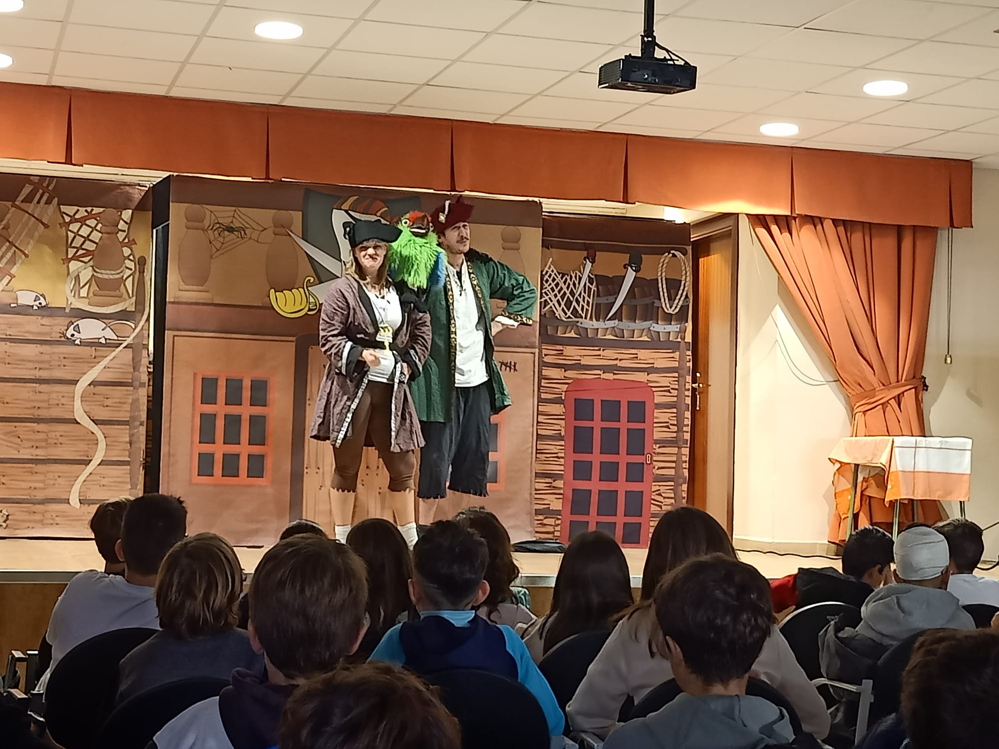 Los alumnos de 3º, 4º, 5º y 6º de Primaria dl CRA La Flecha han sido los destinatarios y espectadores de la obra de teatro en inglés ‘Treasure Island’, de la compañía Face to Face. Una representación que han disfrutado en dos pases que han tenido lugar en el salón de actos municipal.