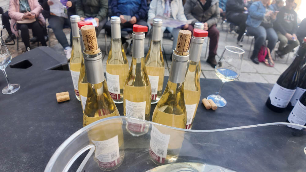 La posterior cata programada se ha trasladado hasta la Plaza Mayor aprovechando la jornada soleada. Cada uno de los productores ha explicado el proyecto enológico de sus bodegas, así como las características de los diferentes vinos que han sido catados. Entre cata y cata se han realizado explicaciones teatralizadas con personas humandos y divinos para contar episodios de la historia de un pueblo que siempre ha estado ligada al cultivo de la vid, al trabajo con la uva y a la producción de exquisitos caldos, que llegan hasta nuestros días.
