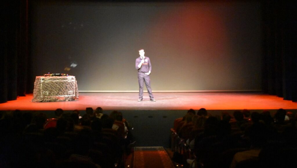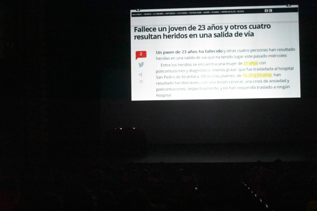 Desde las 12:00 horas de este lunes 10 de noviembre, el Ayuntamiento de Salamanca y la Junta de Castilla y León han celebrado un road show de seguridad vial en el Teatro Liceo, una iniciativa dirigida a estudiantes de primero de Bachillerato de varios centros educativos de la ciudad. La actividad, que combinó contenido multimedia e intervenciones de profesionales sobre las consecuencias de un accidente de tráfico, reunió a 321 escolares. El road show, impulsado por la Asociación de Policías por la Seguridad Vial, TRAFPOL, y la Asociación Española de Lesiones Medulares, AESLEME, combina intervenciones en directo de profesionales y víctimas reales con la proyección de vídeos y noticias, creando una experiencia inmersiva que muestra sin filtros la cadena de acontecimientos de una noche de ocio que termina en tragedia: “Es un espectáculo muy impactante”.