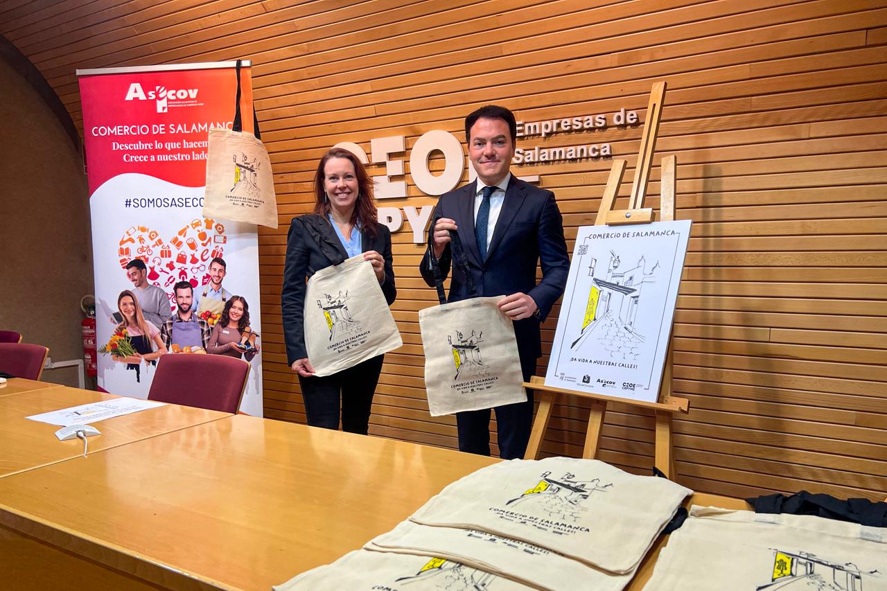 La importancia de comprar en el pequeño comercio local para que siga siendo siga siendo motor de empleo, identidad y cohesión social de la ciudad es el objetivo de la nueva campaña impulsada por la Asociación de Empresarios de Comercio de Salamanca (ASECOV), integrada en CEOE CEPYME Salamanca, que se ha presentado esta mañana de martes, bajo el lema ‘Comercio de Salamanca. Da vida a nuestras calles’.