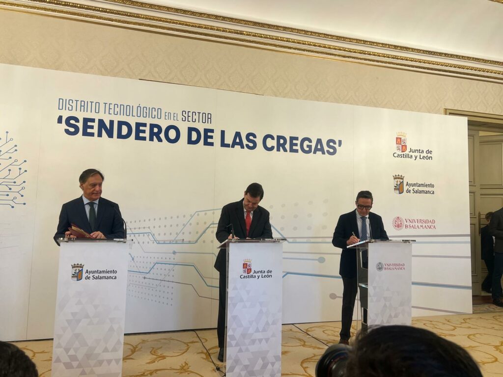 La Junta, el Ayuntamiento y la Universidad de Salamanca firman un protocolo de colaboración que permitirá convertir el sector ‘Sendero de las Cregas’ y su entorno en un espacio de vanguardia para acoger empresas vinculadas a la ciencia, la investigación y la tecnología.