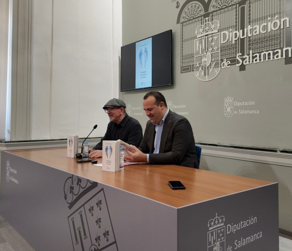 El diputado de Cultura, David Mingo, y el escritor y compositor salmantino, Juan Mari Montes, han presentado la obra ‘Hay ángeles que duermen en tus ojos’, que reúne 150 poemas seleccionados a lo largo de más de 40 años de carrera.