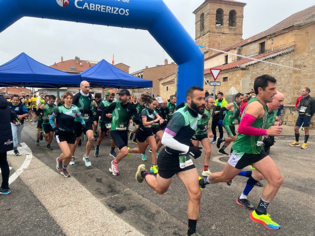 En total, 24 cajones en los que los corredores han iniciado con fuerza y ganas el recorrido de los 10,5 kilómetros por los caminos del municipio hasta prácticamente llegar a Aldealengua, para regresar por las calles de Moriscos en el último tramo hasta cruzar el arco de meta.