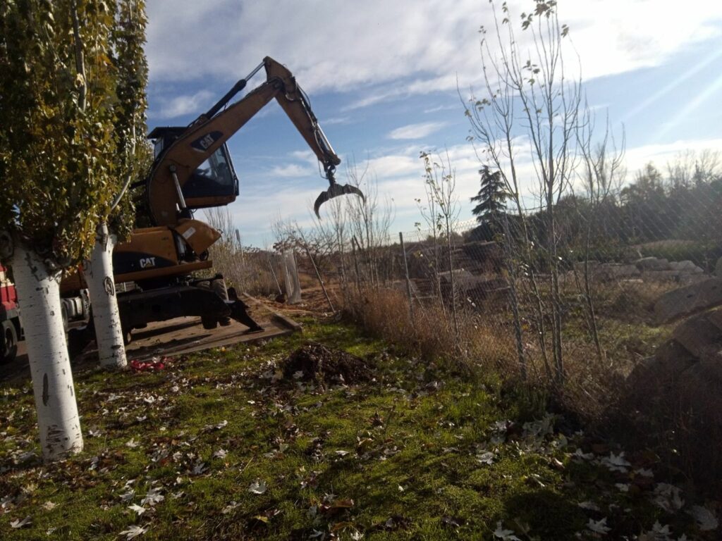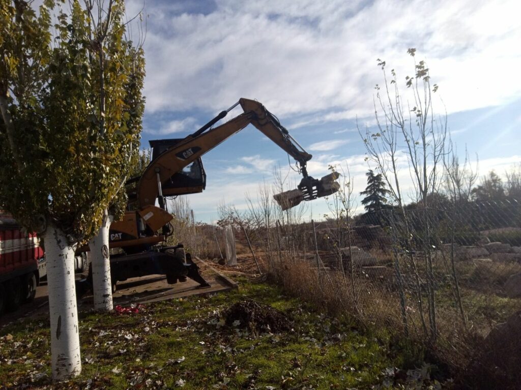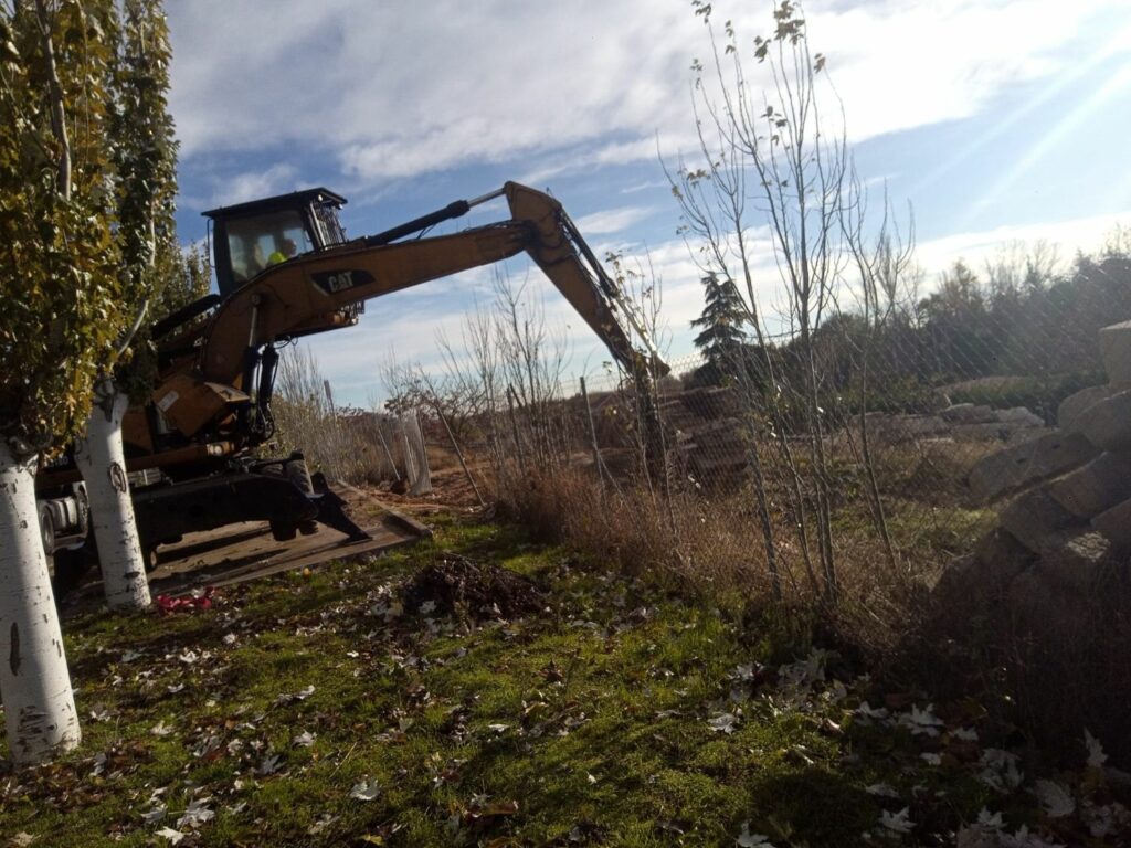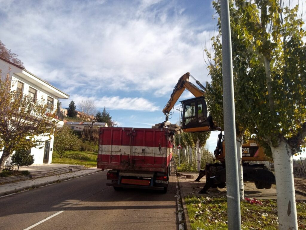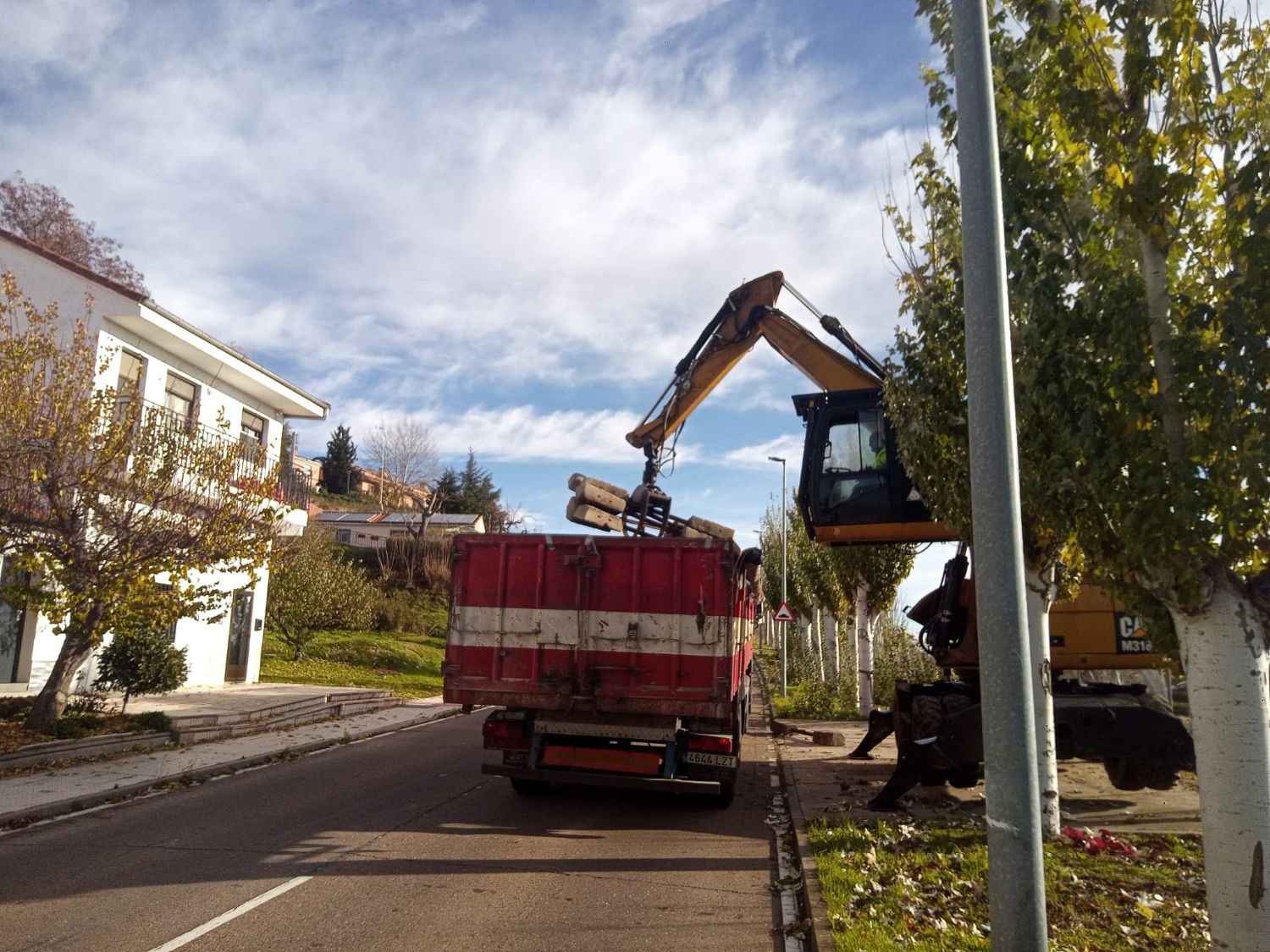 Esta mañana se han iniciado los trabajos a primera hora, con la colocación de la maquinaria pesada para proceder a la retirada de las traviesas en desuso que se acumularon junto a la calle Cuesta, tras quitarlas con la electrificación de la vía.