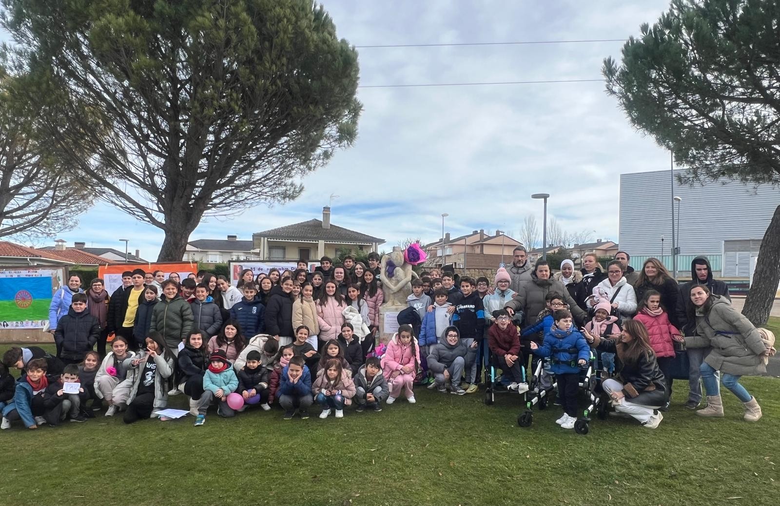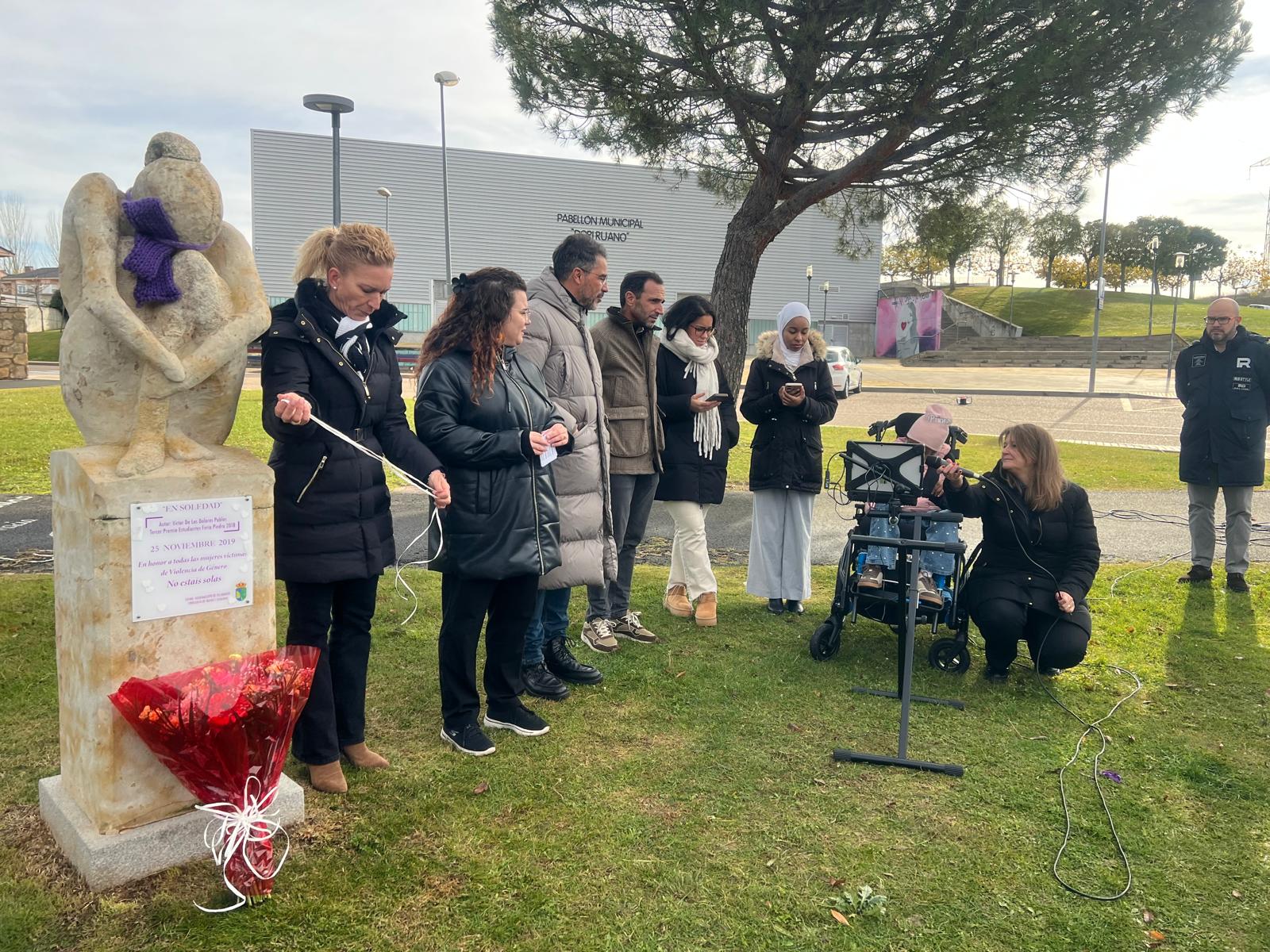 El acto central de esta jornada ha tenido lugar en la avenida Diego Velázquez, junto a la escultura de la mujer ante la que Ayuntamiento, centros educativos (CEIP Piedra de Arte, CEIP Ciudad de los Niñ@s, CEE El Camino de Aspace y el IESO Tomás Bretón) y vecinos se han reunido para gritar alto y fuerte ‘No a la violencia contra las mujeres’.