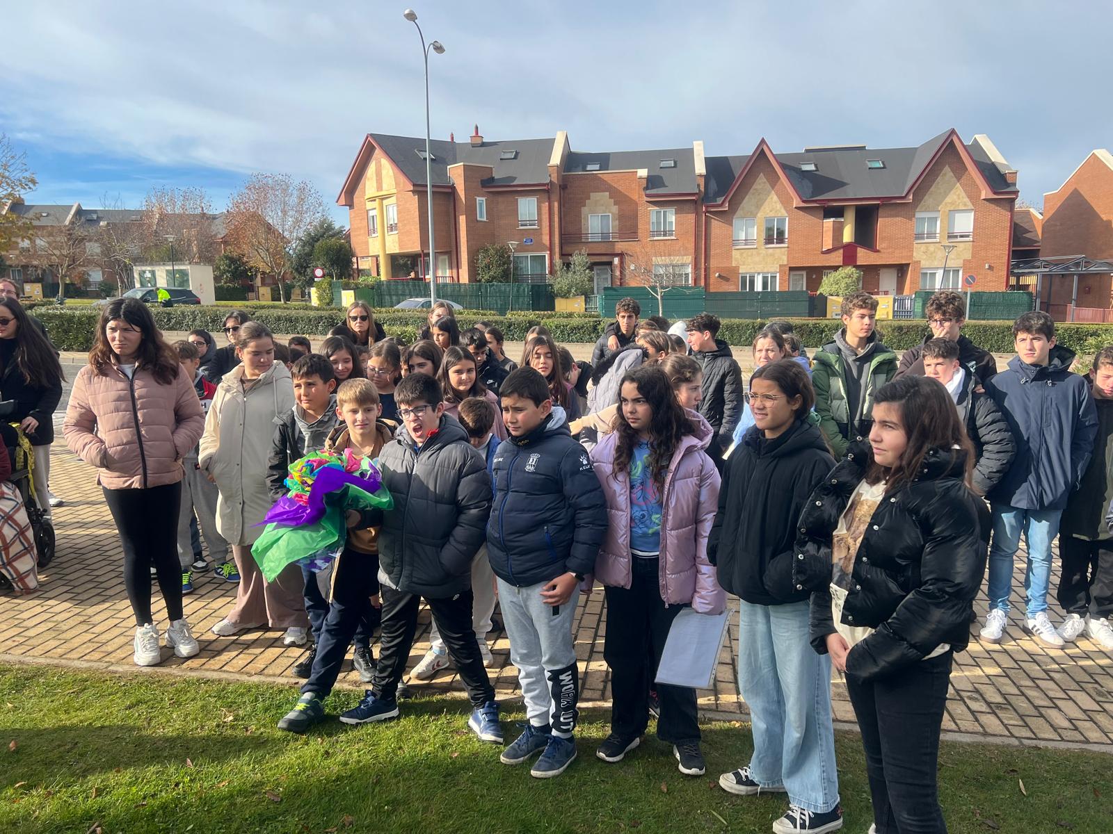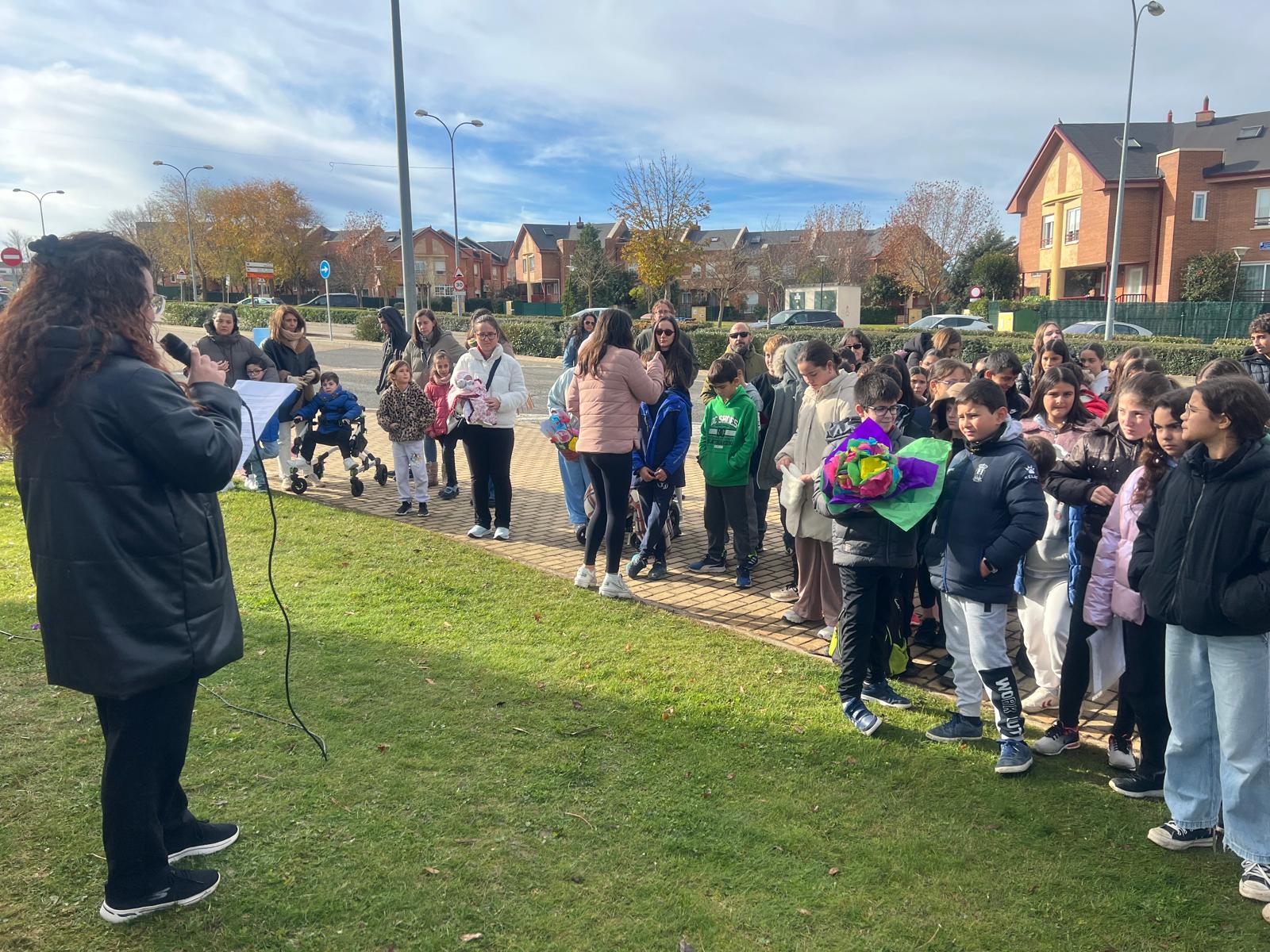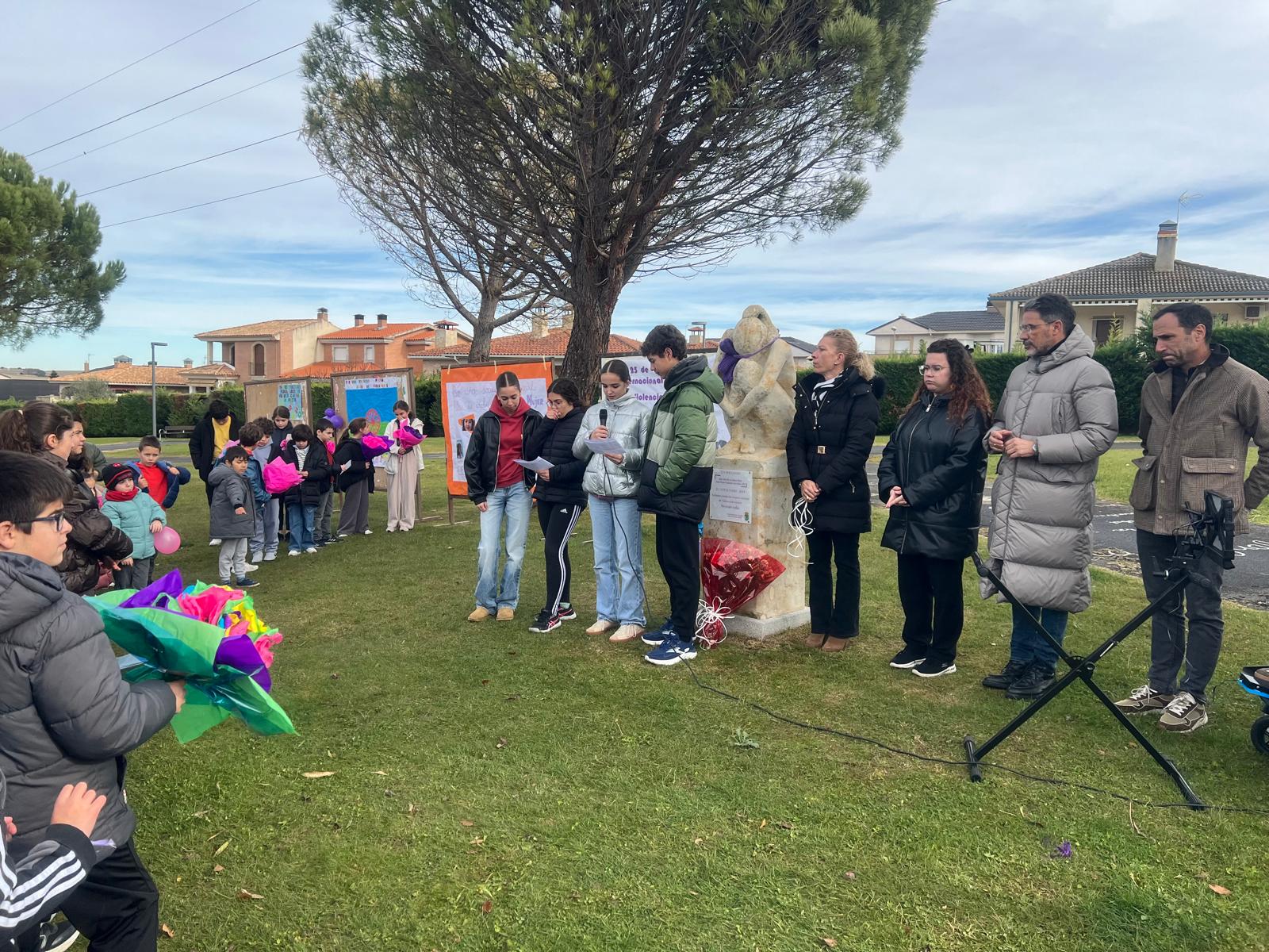 Tras la lectura del manifiesto institucional a cargo de la concejala Lucía Guinaldo, una representación de los escolares de cada colegio también han expresado en voz alta su rechazo a la violencia machista. A continuación, se ha realizado la ofrenda floral, colocando un ramo de flores a los pies de la escultura y cada colegio también ha puesto sus particulares centros y flores hechos de papel.