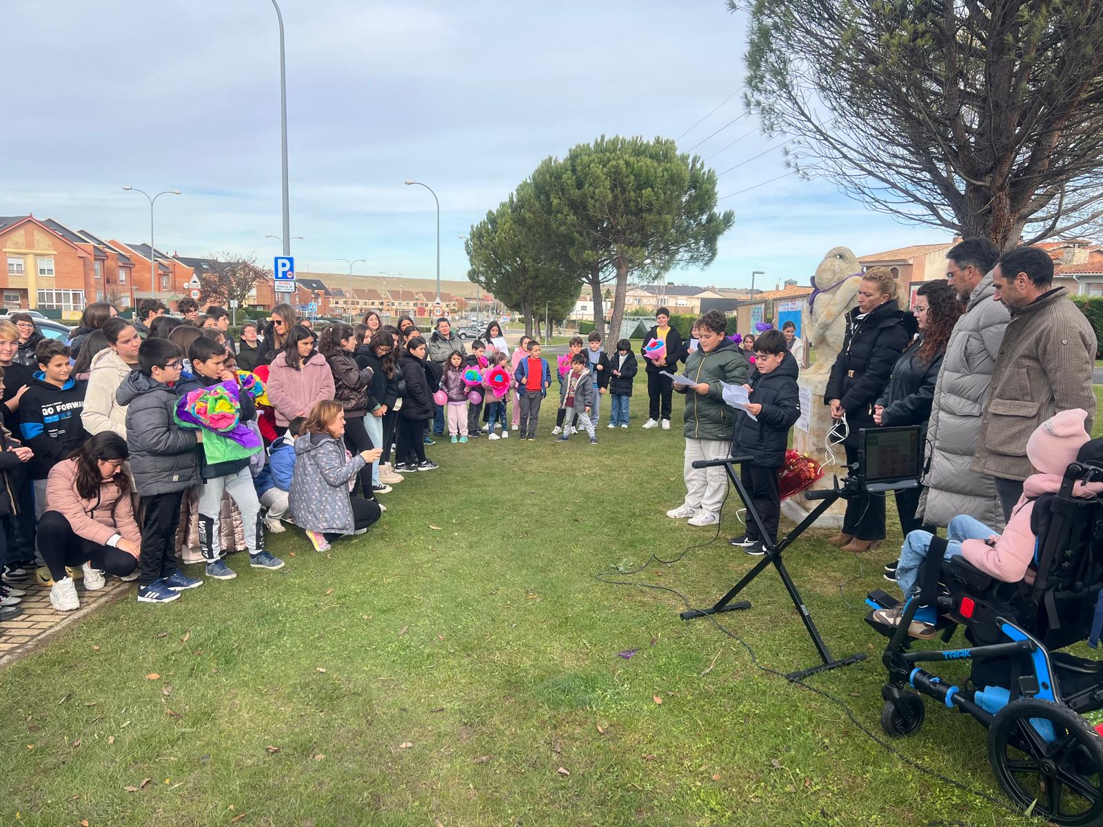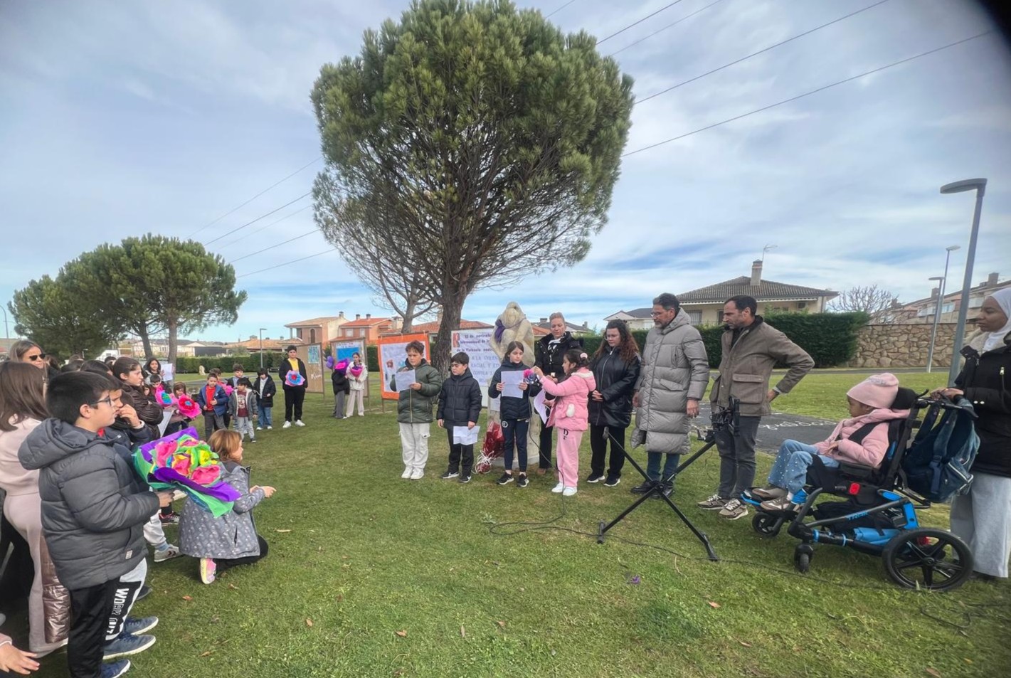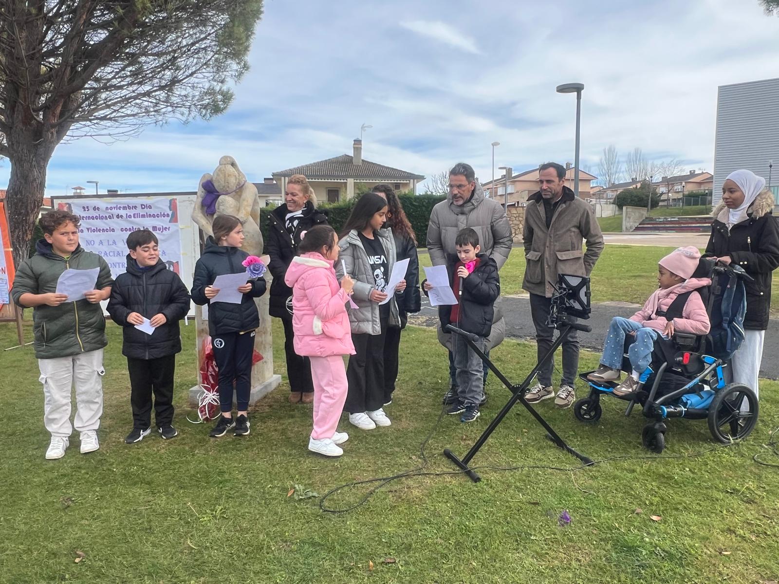 Tras la lectura del manifiesto institucional a cargo de la concejala Lucía Guinaldo, una representación de los escolares de cada colegio también han expresado en voz alta su rechazo a la violencia machista. A continuación, se ha realizado la ofrenda floral, colocando un ramo de flores a los pies de la escultura y cada colegio también ha puesto sus particulares centros y flores hechos de papel.