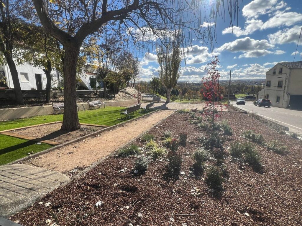 Los trabajos para mejorar la imagen de este espacio de 650 m2 dividido en dos zonas y que está situado junto al aparcamiento del Ayuntamiento, se han centrado principalmente en el desbroce de toda la superficie para retirar la vegetación espontanea que invadía todo el espacio. Además, se ha pintado y reparado el muro de contención que presentaba varios desperfectos y se ha coronado con cemento; se han sustituido varios bordillos mediante enfoscado y coronación de muro con cemento y se ha instalado un sistema de riego automático con programadores de última generación para racionalizar de manera óptima el consumo de agua.