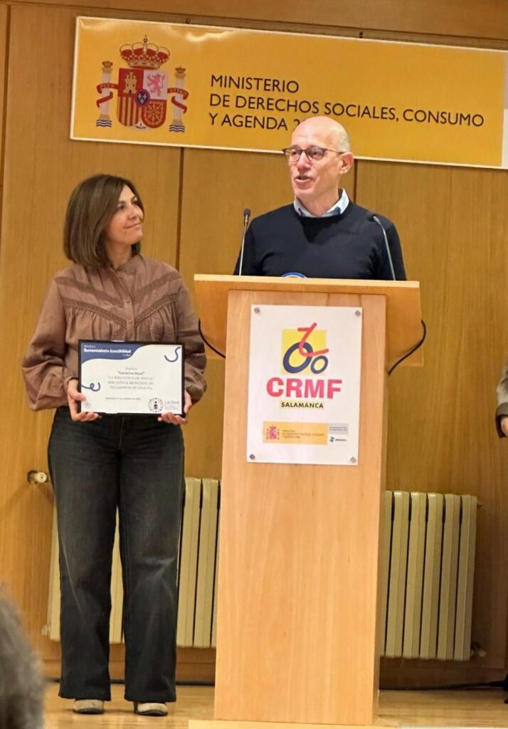 La Biblioteca Pública Municipal ha recibido el galardón a la ‘Mejor Iniciativa Accesible en el Medio Rural‘ en la III Edición de los Reconocimientos a la Accesibilidad otorgados por la Red del Centro de Recuperación de Personas con Discapacidad Física (CRMF) del IMSERSO en Salamanca.