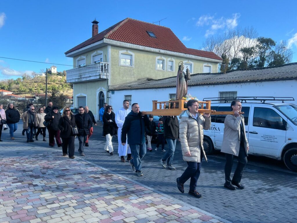 Los actos religiosos han centrado la programación festiva de la mañana dominical en Aldeatejada. La misa y la posterior procesión con la imagen de Santa Bárbara ha recorrido las calles del centro urbano seguida por cerca de un centenar de fieles que han acompañado a su patrona.