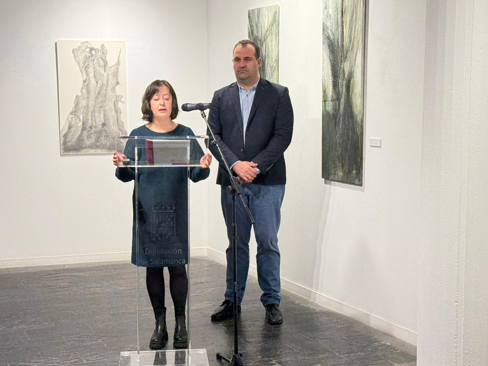 La Sala de Exposición de La Salina ha acogido la presentación de la muestra ‘Soledades’ de la artista Purificación del Bosque. El diputado de Cultura, David Mingo, ha inaugurado la exposición que reúne 30 piezas, 17 pinturas y 13 dibujos, que revelan una mirada personal donde naturaleza, memoria y emoción se entrelazan. Del Bosque trabaja con telas, papeles y maderas talladas, generando superficies que se despliegan en distintos niveles y donde la luz y el color se convierten en elementos esenciales para construir la imagen. Los dibujos, realizados en lápiz y tinta sobre papeles de distintas texturas, aportan una lectura más contenida pero igualmente expresiva.