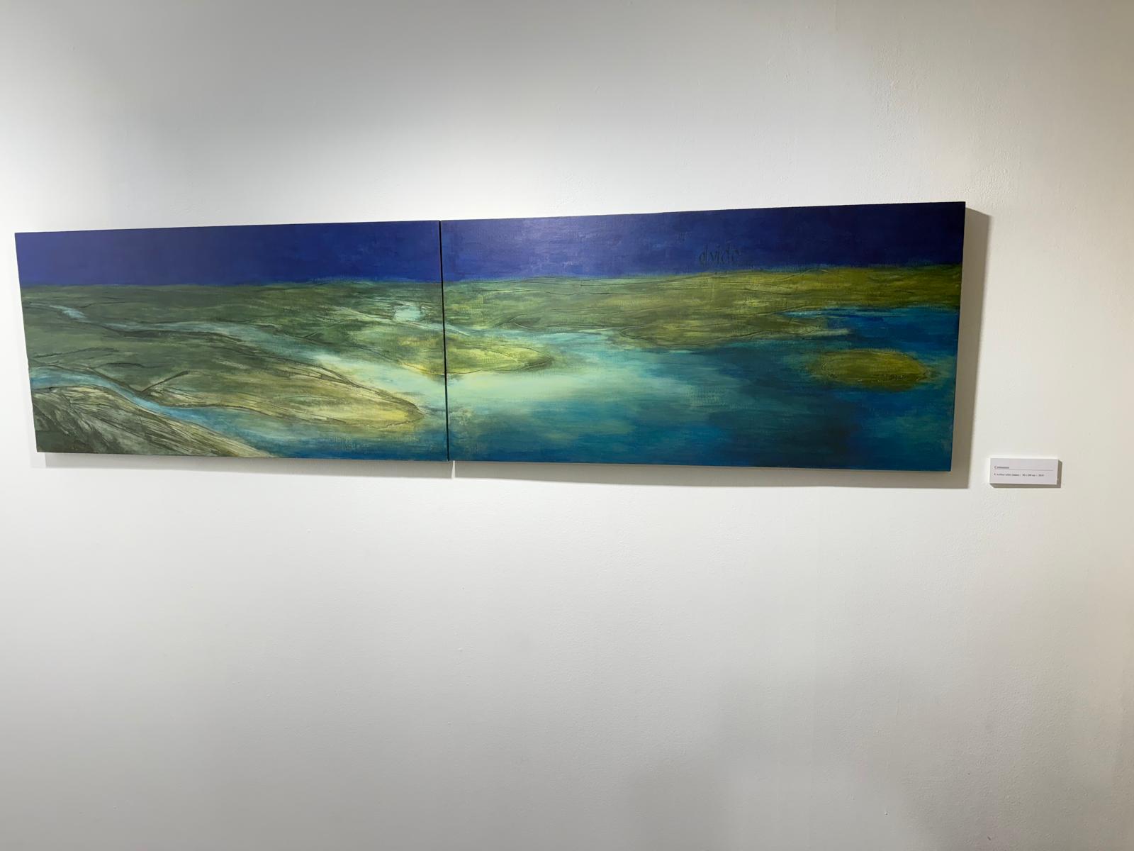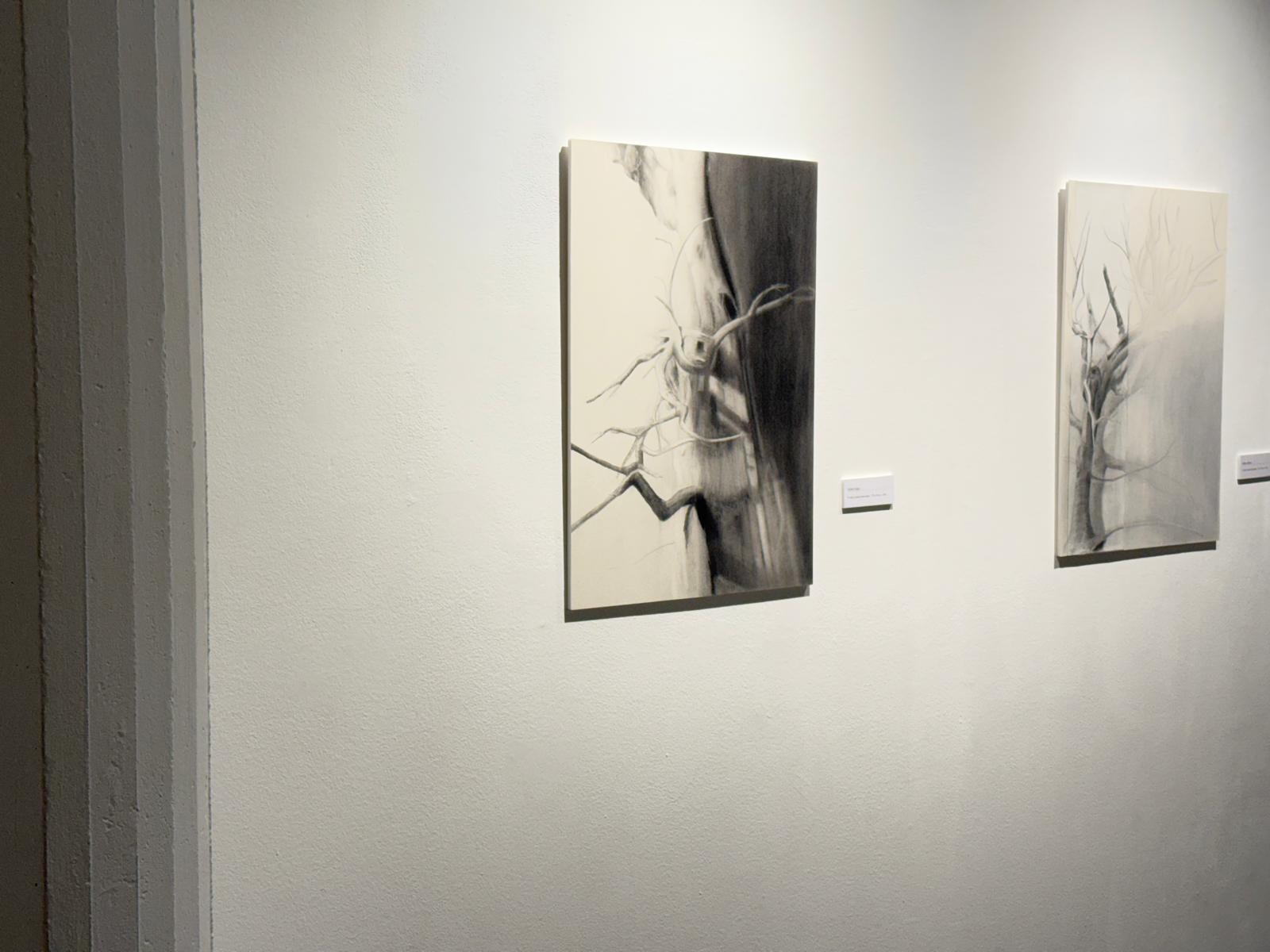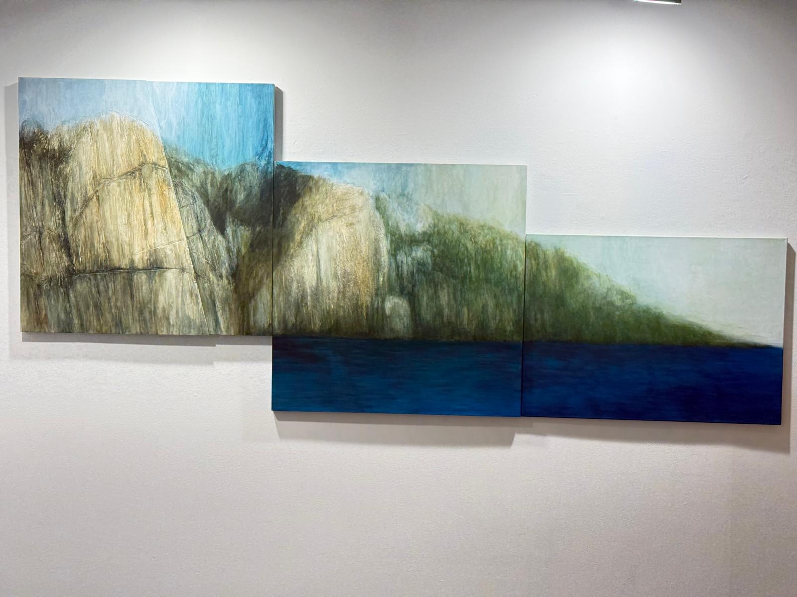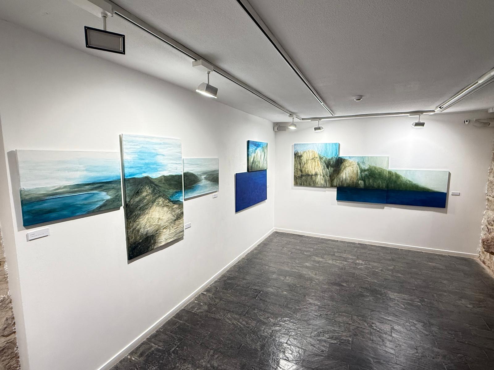 El recorrido se articula en dos series que muestran la evolución de la autora en la última década. La primera, ‘Siberia’, está integrada por 14 obras finalizadas en 2023, e inspirada en los paisajes de la comarca extremeña de La Siberia. La segunda serie, ‘Algia’, está compuesta por 10 pinturas y 6 dibujos creados entre 2023 y 2025, recoge vivencias y procesos personales recientes, incorporando materiales reciclados que aportan nuevas lecturas y texturas. La influencia del entorno de Castañar de Ibor se hace visible en el tono y la atmósfera de estas obras.