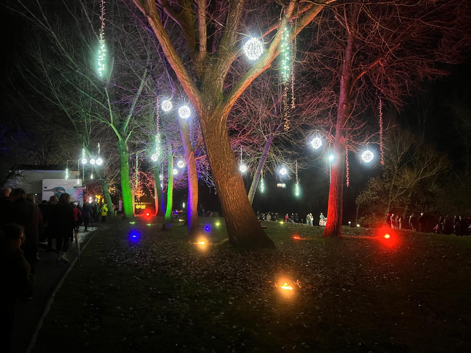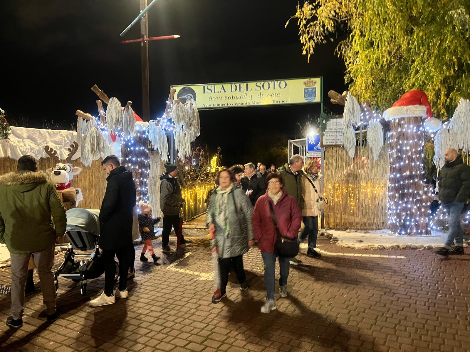 Cientos de vecinos se han dado cita en la Isla del Soto para presenciar una de las principales novedades de este año con la iluminación y decoración de los rincones más emblemáticos de este paraje natural.