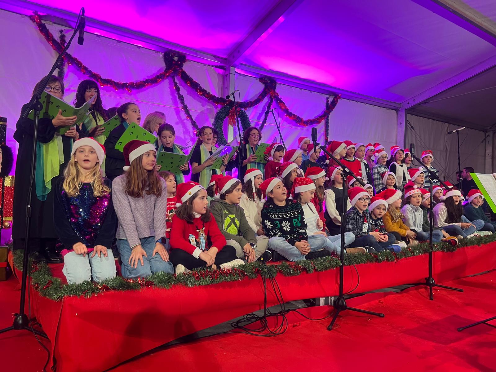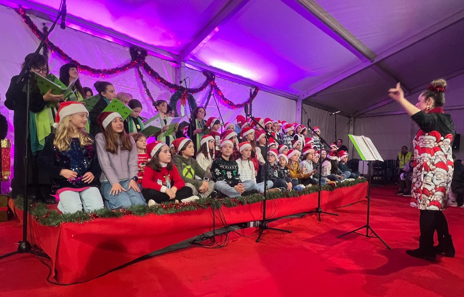 La jornada inaugural ha concluido con el concierto de villancicos ofrecido por los alumnos de la Escuela Municipal de Música y Danza celebrado en la carpa ubicada junto a la Plaza de España.