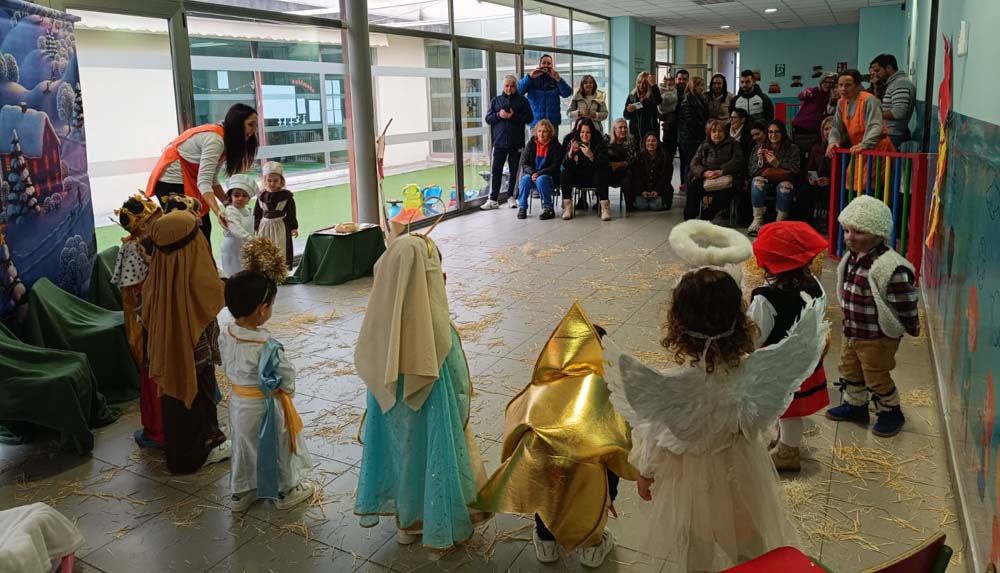 Los niños de la Escuela Municipal Infantil de Santa Marta de Tormes han participado en la creación de un belén navideño viviente. Una docena de ‘figurantes’ se han caracterizado para dar vida a los principales personajes navideños. Jeús, María y José, los Magos de Oriente, el ángel, la estrella o los pastores. Una representación que ha estado sazonada con los villancicos que han interpretado, tocando instrumentos como la pandereta y con la que han disfrutado los padres que han podido presenciar la actuación, así como la concejala de Educación, Juani Rubio.