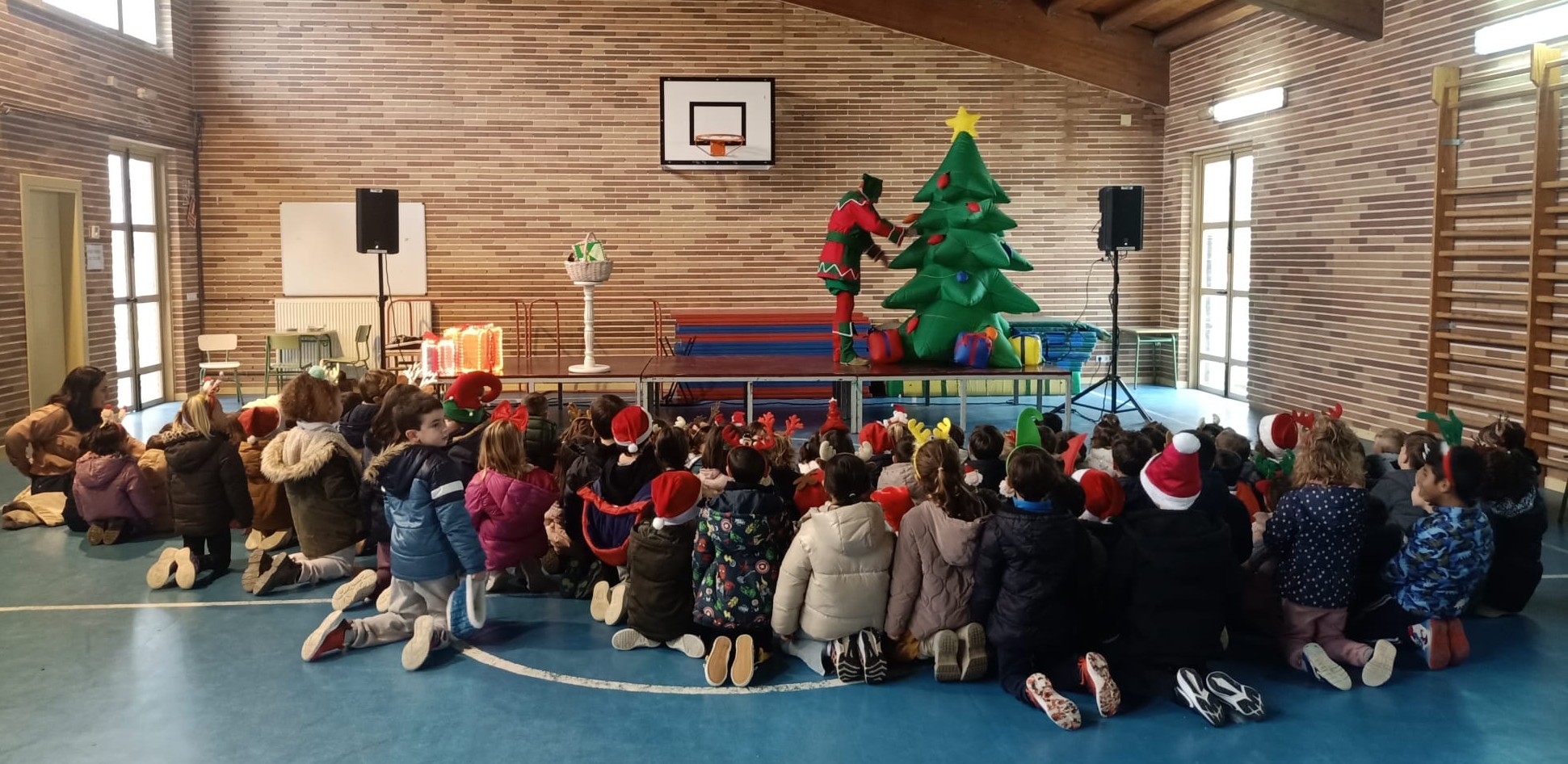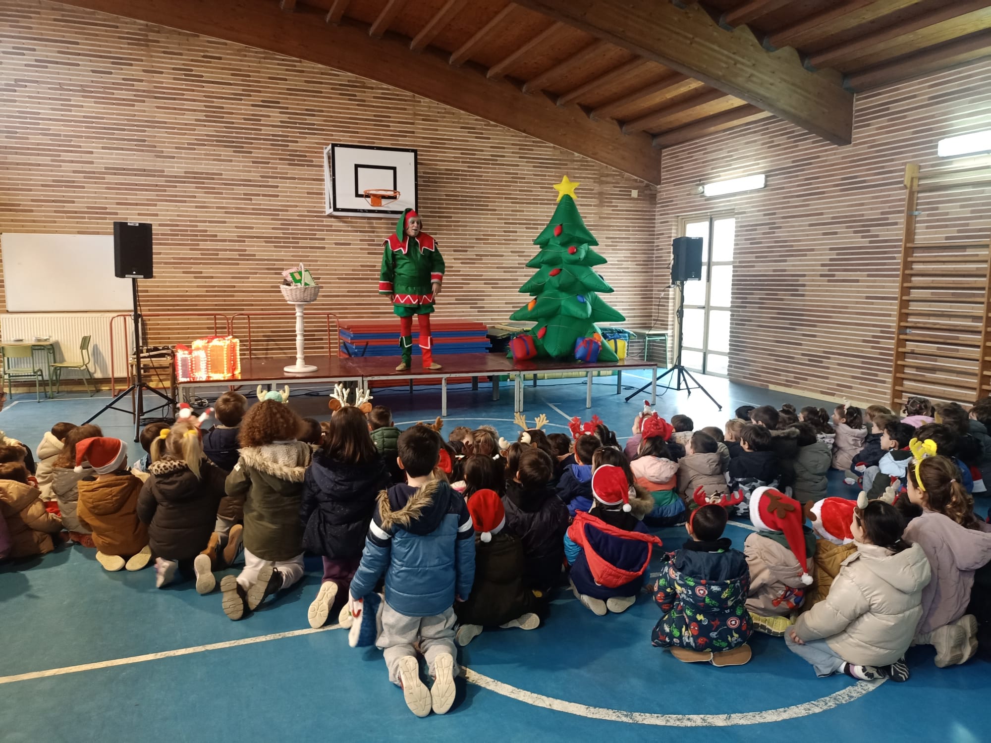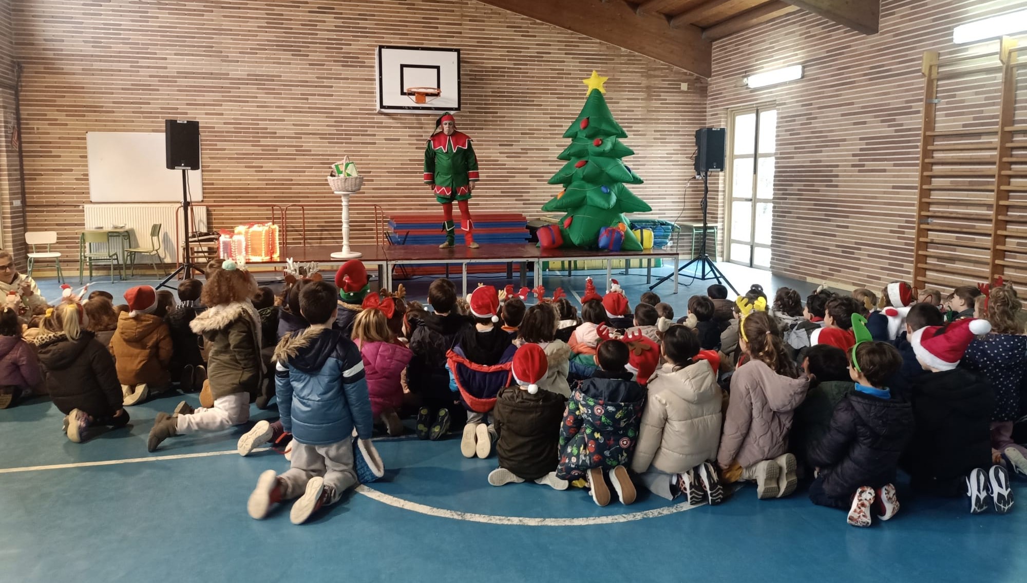 Como cada año, los escolares de la Escuela infantil y del CRA La Flecha han esperado esta mañana nerviosos y expectantes a ‘Santi Claus’ que ha llegado acompañado del alcalde del municipio, Claudio del Río, para llevar el ambiente navideño a los más pequeños del municipio.