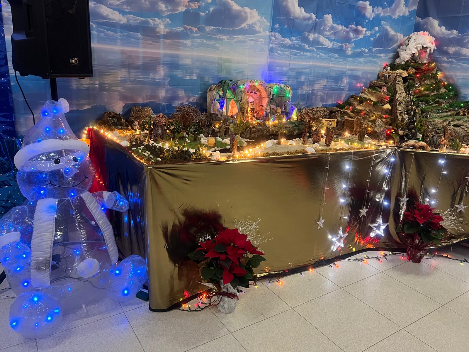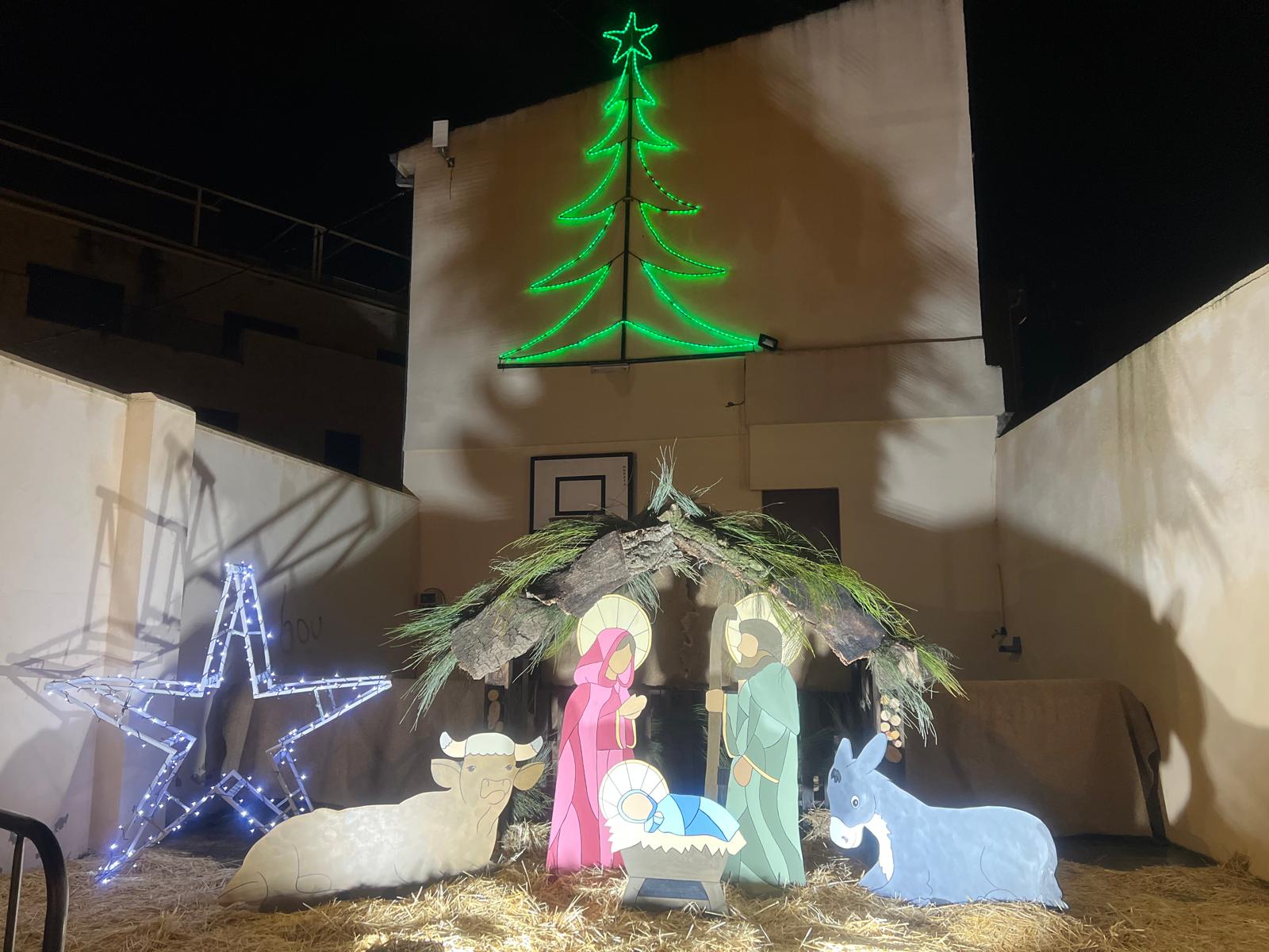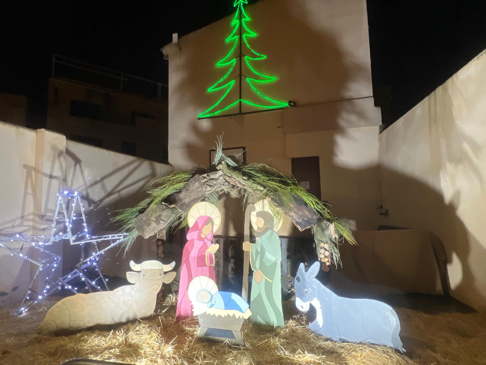 La novedad de este año es el Navimiento a tamaño natural elaborado con elementos reciclados por el grupo de vecinos que se forma voluntaria de han reunido para realizar y pintar el Misterio, que permanece expuesto en el patio del centro visible desde la Plaza.