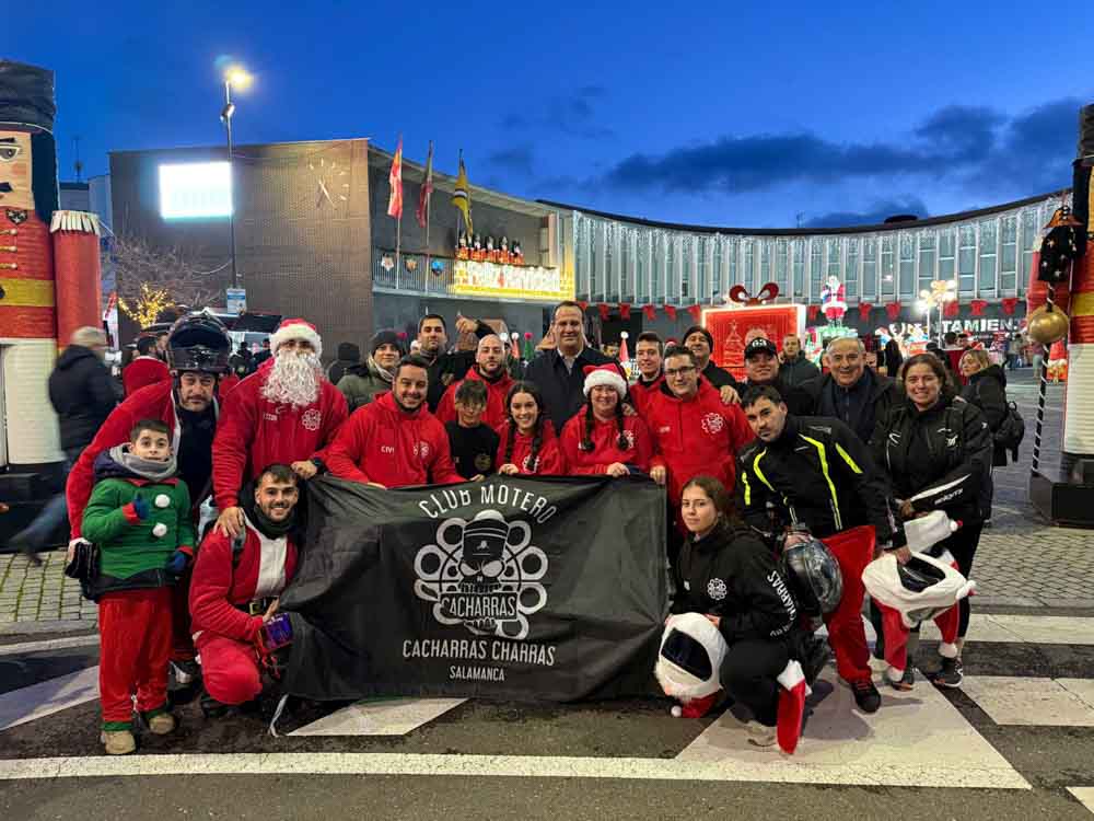 A las 17:00 horas estaba programada la quedada en la Avenida La Serna con los moteros de la asociación y cientos de amantes del mundo del motor que se han sumado a la convocatoria. Espectacular la caravana de ‘papanoeles’ con sus monturas decoradas para la ocasión, que han llamado la atención con el ruido de los potentes motores y el olor a gasolina que han llevado hasta Salamanca, hasta la Plaza España para volver a Santa Marta y hacer parada la Villa Navideña.