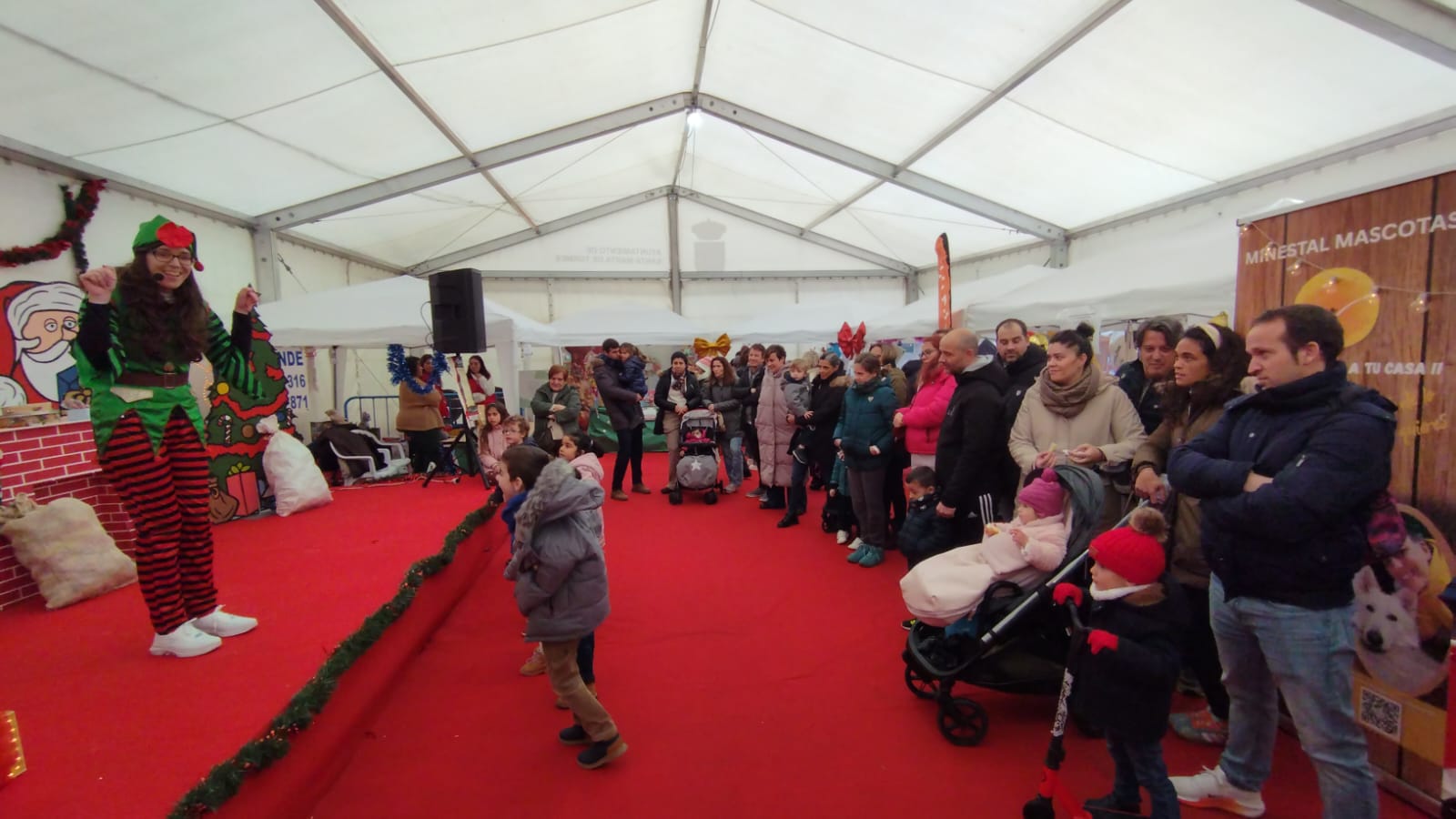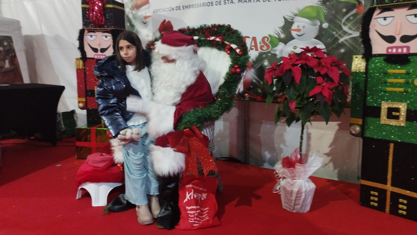 El frío y las bajas temperaturas que han rondado por momentos los cero grados no han impedido que un día más cientos de personas se hayan desplazado hasta Santa Marta de Tormes para disfrutar de las actividades navideñas, los talleres y la iluminación de la Villa y la Isla de la Navidad. Última jornada del Mercado Navideño que se ha organizado la Asociación de Empresarios y que se ha celebrado durante el fin de semana con una decena de expositores del municipio que han mostrado sus productos en la carpa del Ayuntamiento. Además, los más pequeños han podido disfrutar de la sesión de cuentacuentos y de la visita que han realizado Papá Noel.