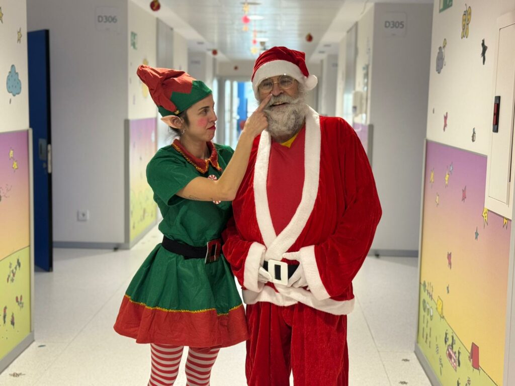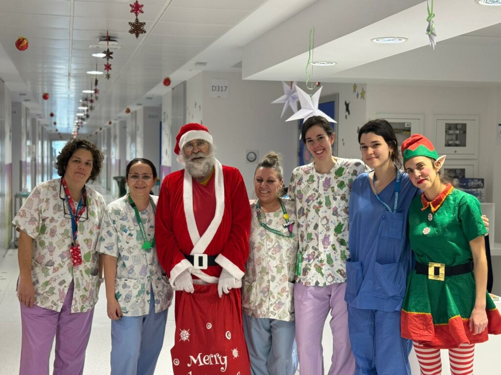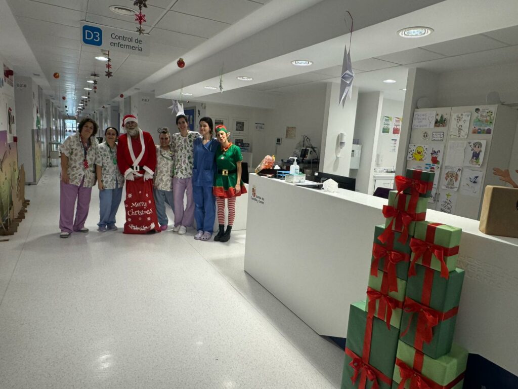 El Hospital Universitario de Salamanca ha recibido una visita muy especial. Papá Noel, acompañado de sus elfas, ha realizado una parada en el complejo sanitario salmantino y ha visitado las zonas pediátricas. Desde las 12:00 horas se ha acercado a las habitaciones de las plantas de hospitalización de Pediatría, ha visitado el Hospital de Día Pediátrico, las áreas de Neonatología, UCI Pediátrica y también las Urgencias Pediátricas, consiguiendo que todos a su paso, grandes y pequeños, mostraran su sorpresa y felicidad.