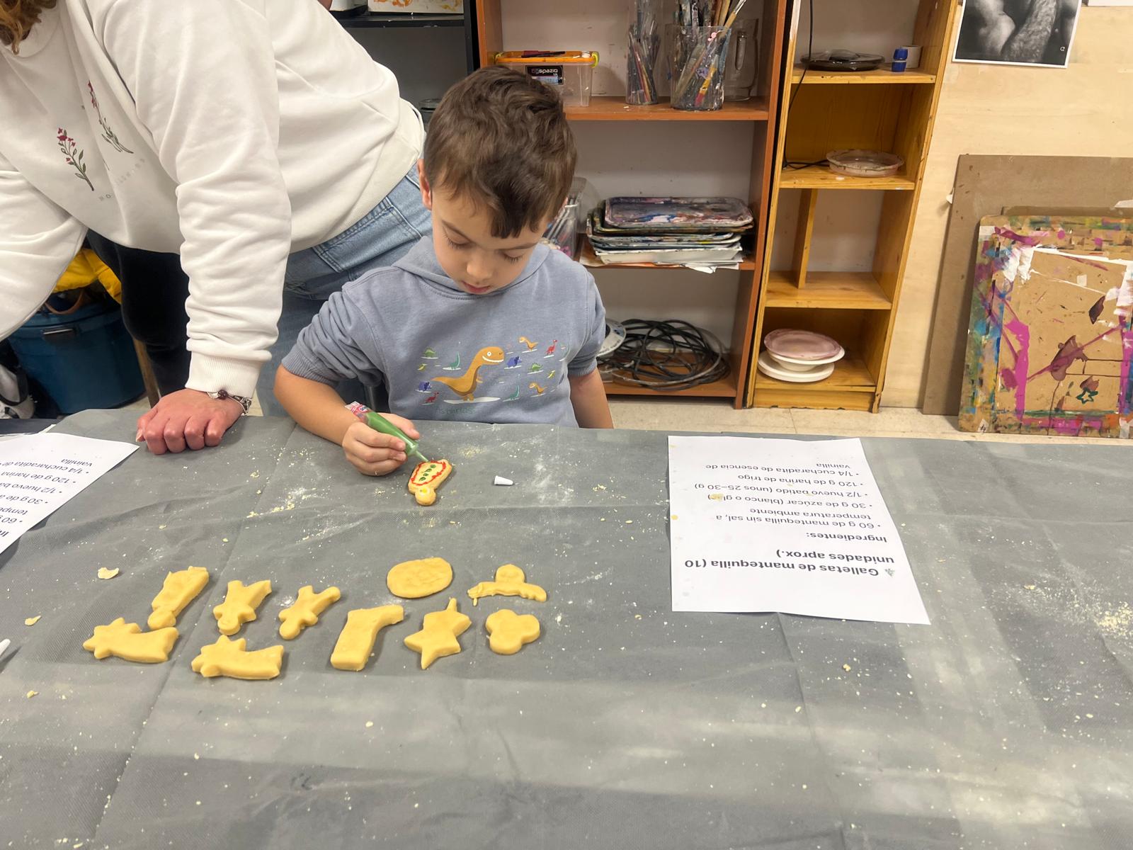 Niños y papás se han puesto con las manos en la masa y han realizado el proceso de elaboración al completo: la masa, cortar las formas, hornearlas y después decorarlas de colores con glaseado.