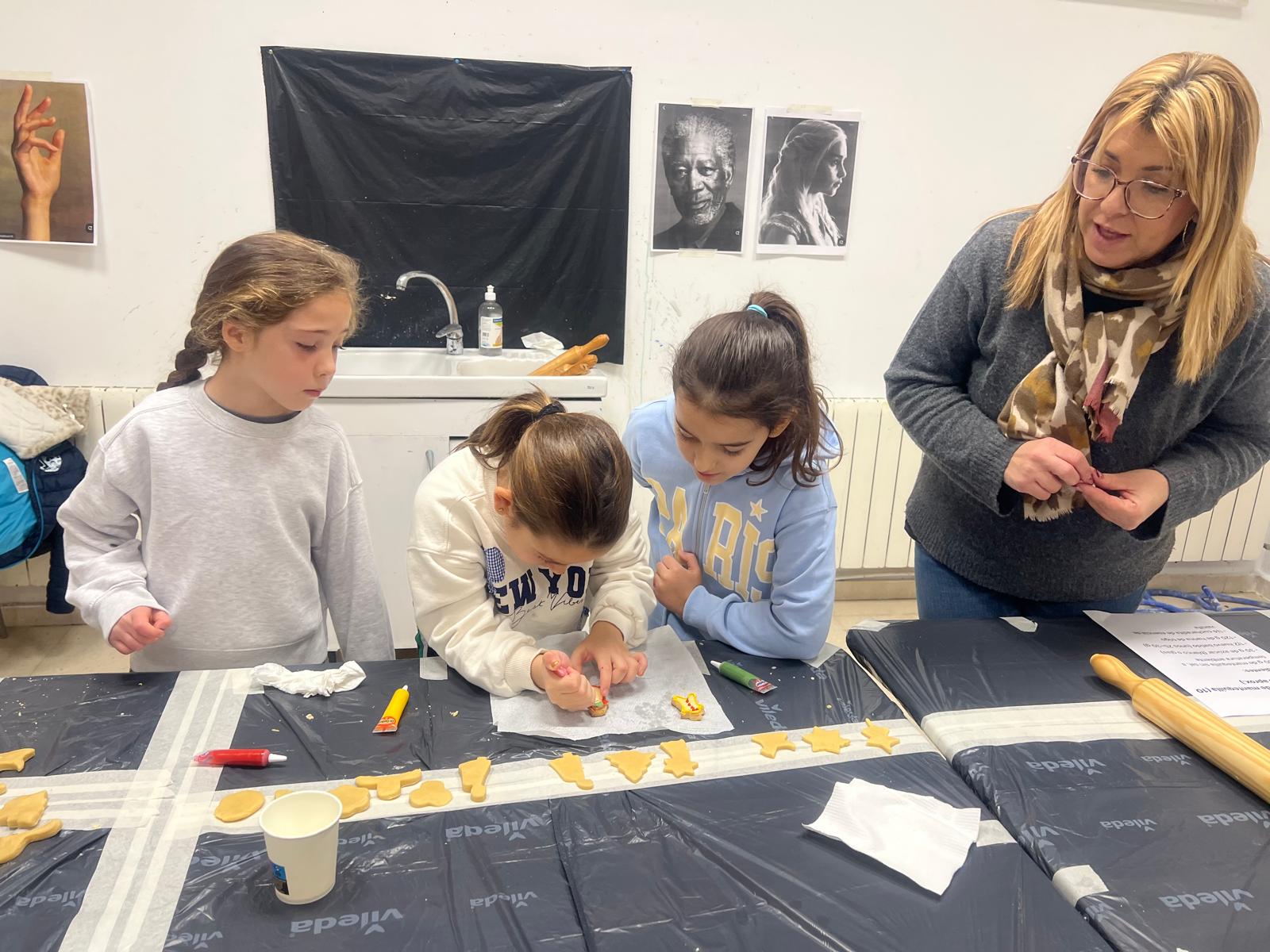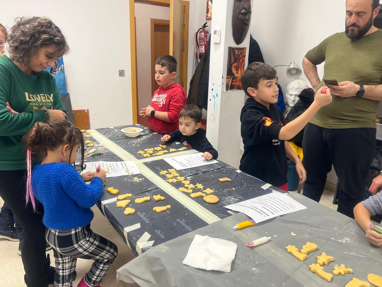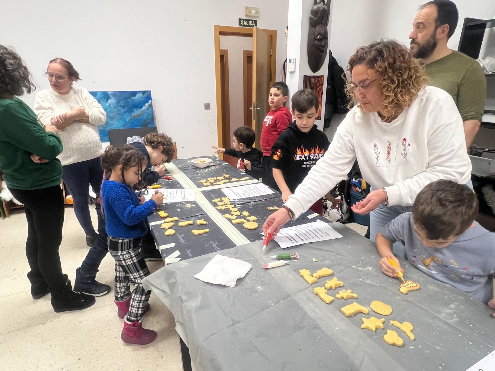 Varias familias han participado esta tarde en un entretenido taller navideño en el que han elaborado galletas con motivos de Navidad.