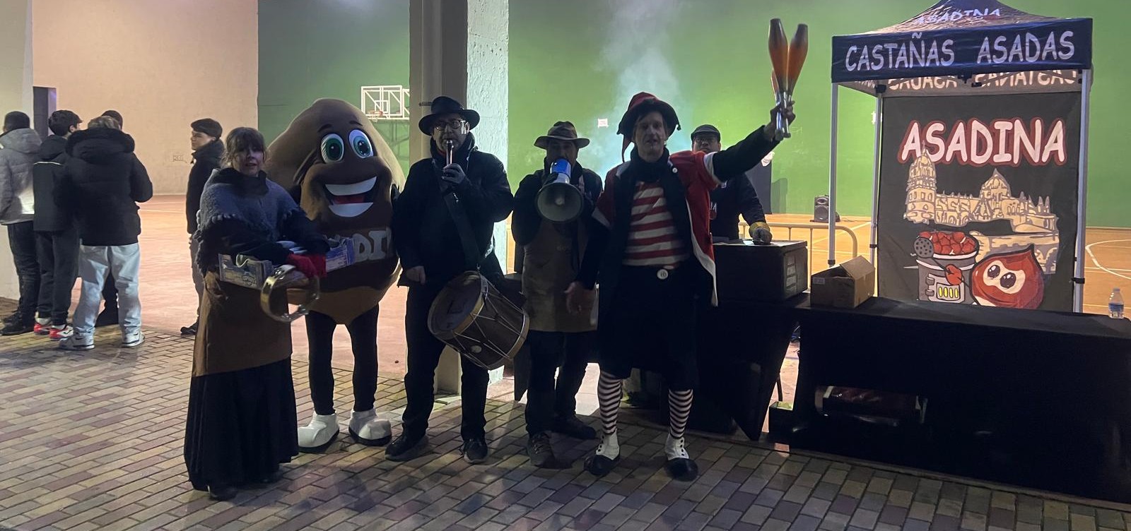 La tarde ha comenzado con la animación musical del tamborilero y el pasacalles con la castaña Asadina que han recorrido el centro del municipio hasta la Plaza Mayor, donde niños y papás han participado en las canciones y juegos realizados, todos relacionados en torno a este típico fruto otoñal.