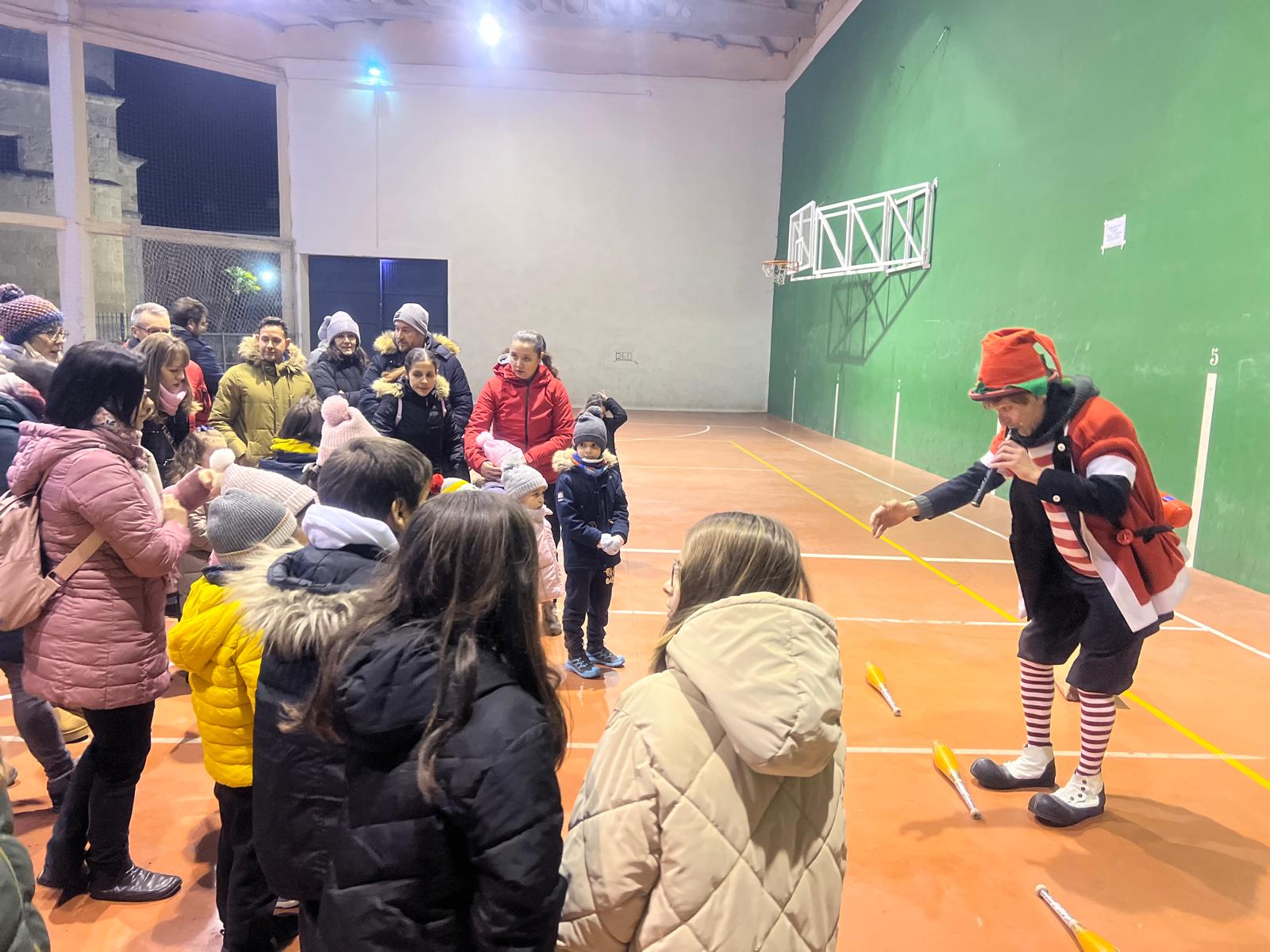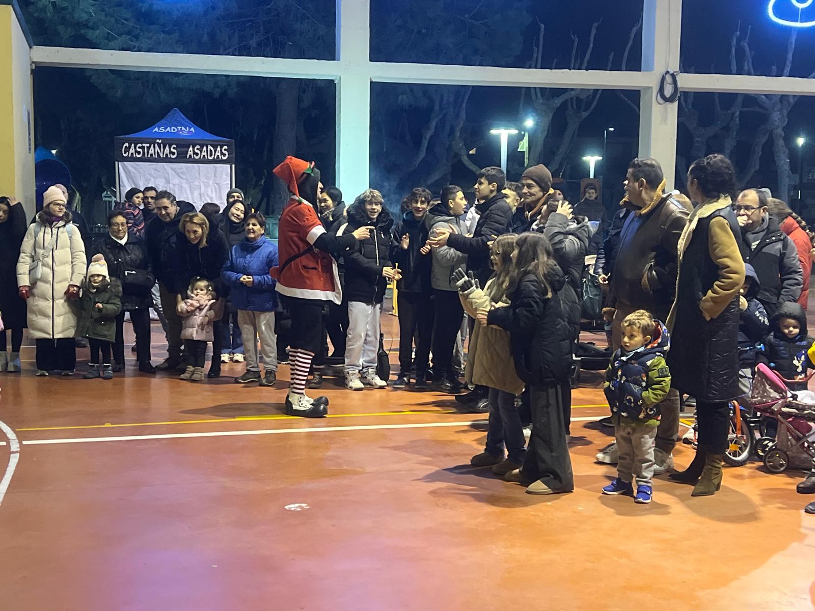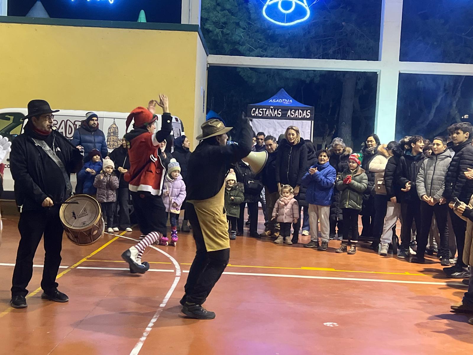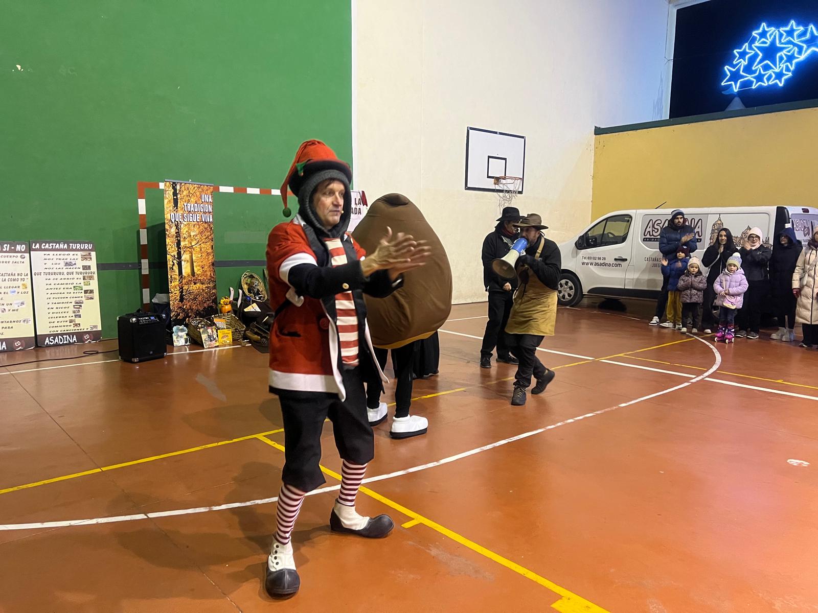 De regreso al frontón, mientras los castañeros ultimaban el asado de castañas, los vecinos han sido protagonistas de las canciones y números circenses del simpático payaso que ha completado el espectáculo navideño.