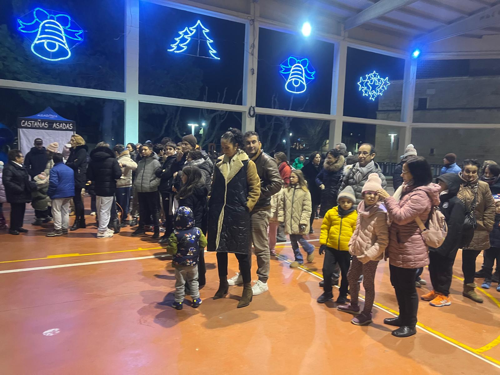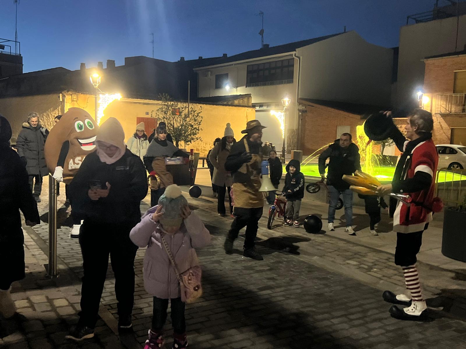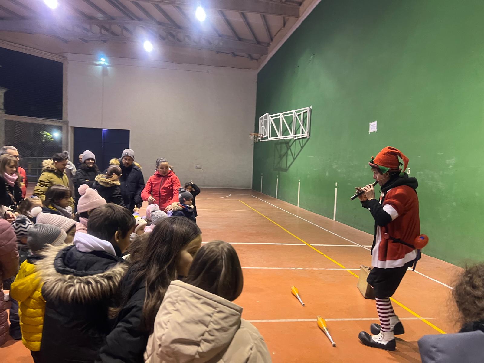 De regreso al frontón, mientras los castañeros ultimaban el asado de castañas, los vecinos han sido protagonistas de las canciones y números circenses del simpático payaso que ha completado el espectáculo navideño.