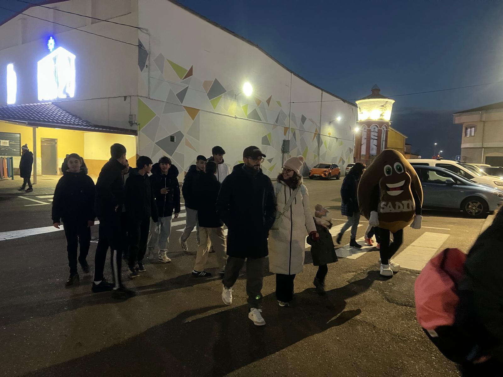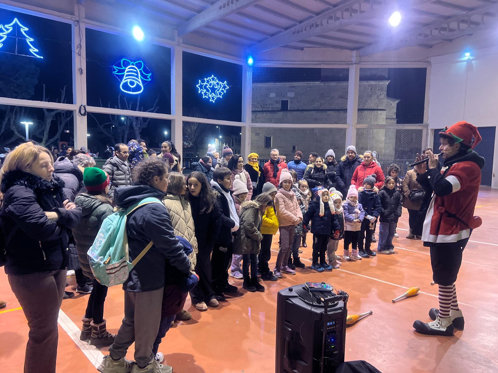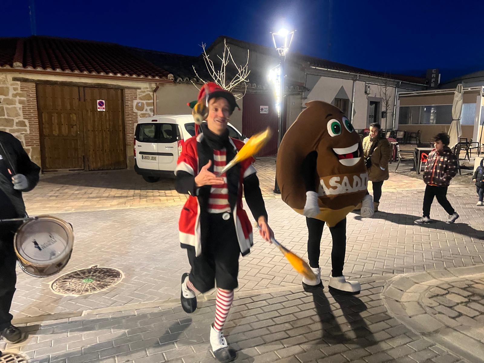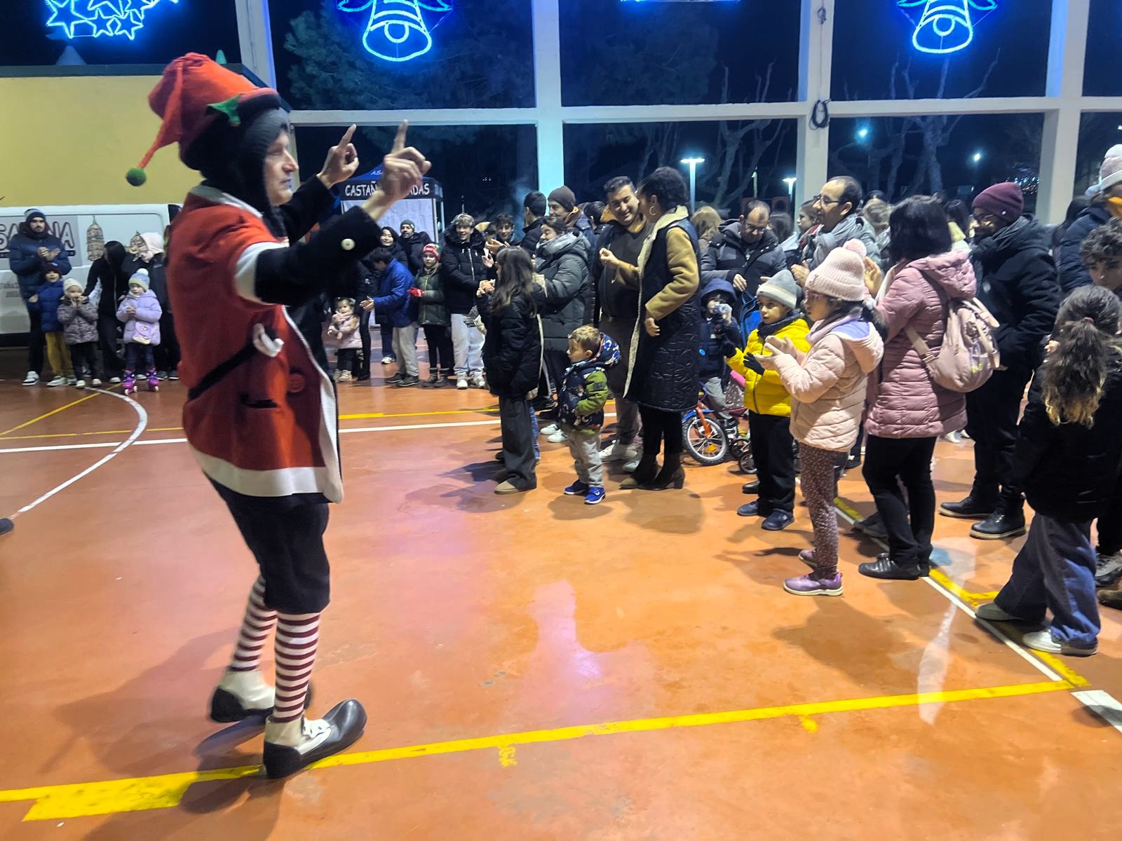 De regreso al frontón, mientras los castañeros ultimaban el asado de castañas, los vecinos han sido protagonistas de las canciones y números circenses del simpático payaso que ha completado el espectáculo navideño.