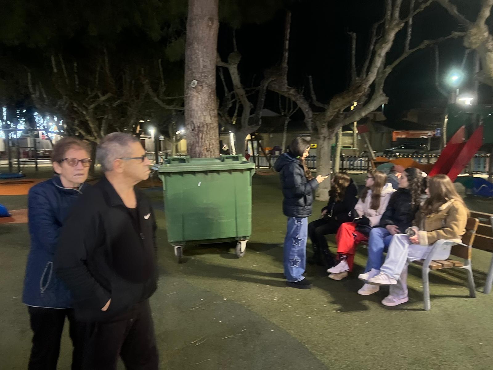 Bien abrigados, con gorros, guantes y bufandas, niños, jóvenes y papás de Castellanos han salido a la calle para disfrutar y participar en el espectáculo de animación organizado para esta tarde, en el que los malabares y las escenas circenses han ido llenando el frontón del parque, además de la degustación de 100 kilos de castañas asadas.