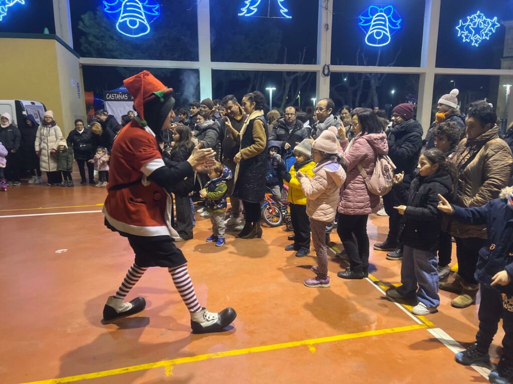 De regreso al frontón, mientras los castañeros ultimaban el asado de castañas, los vecinos han sido protagonistas de las canciones y números circenses del simpático payaso que ha completado el espectáculo navideño.