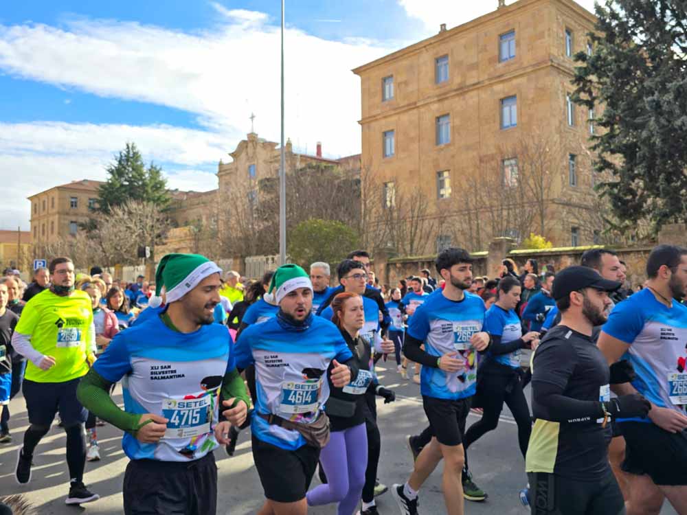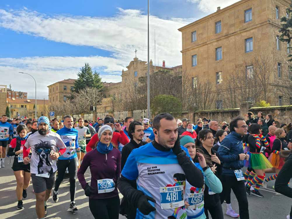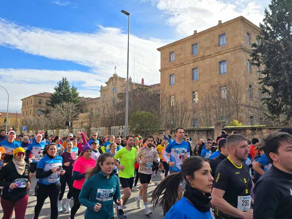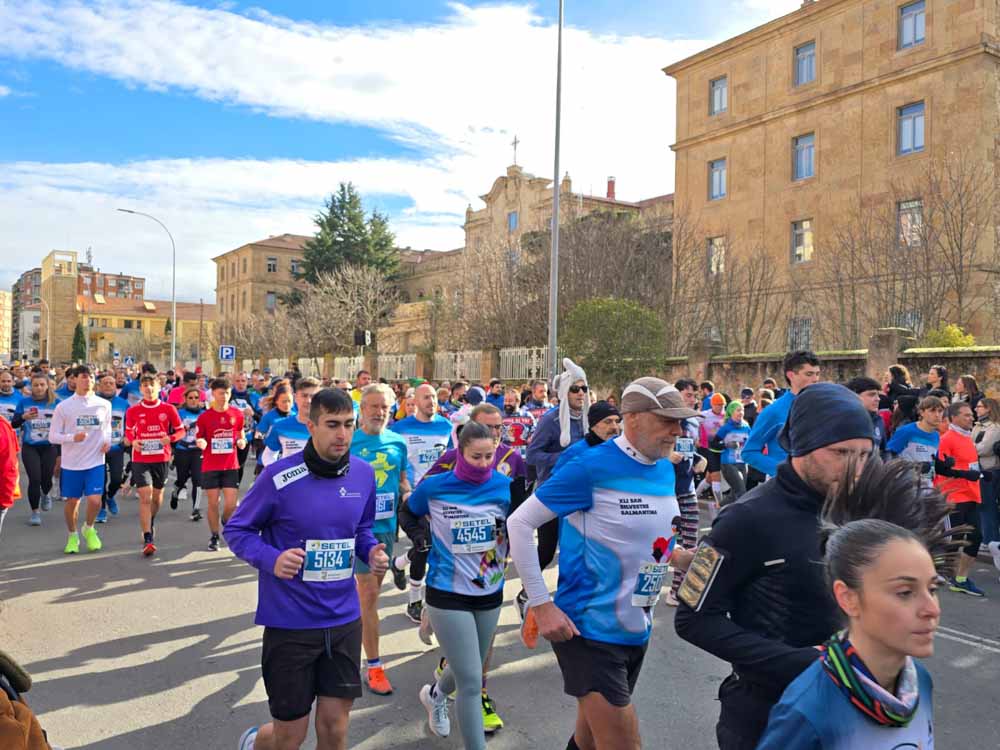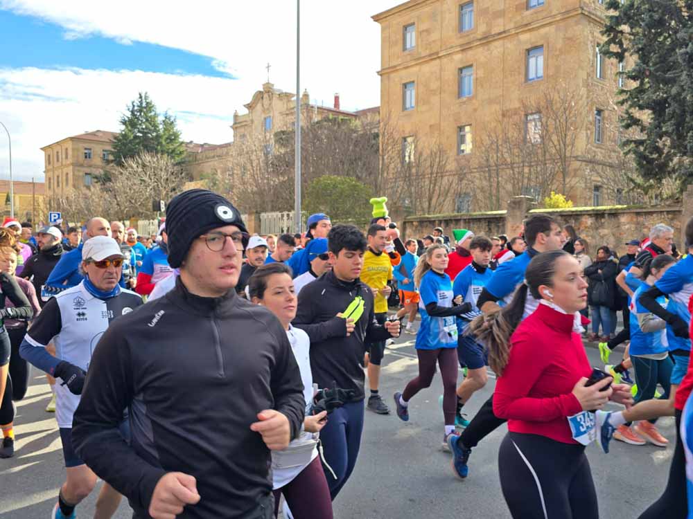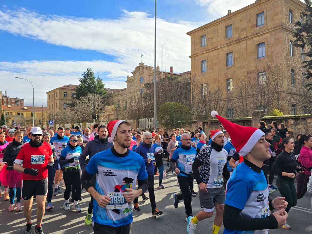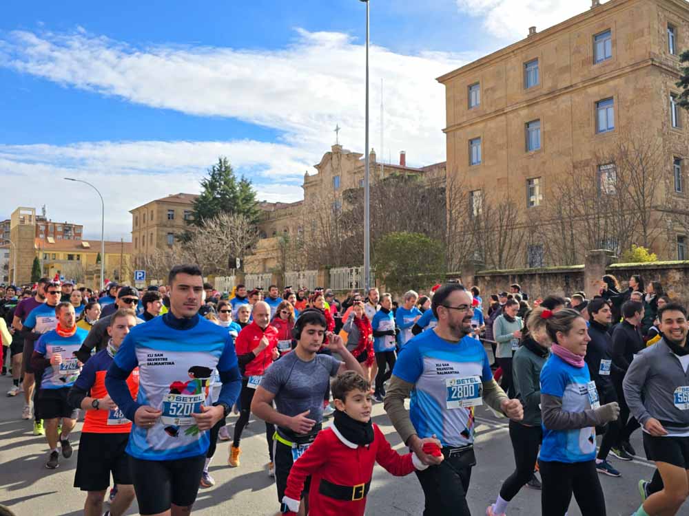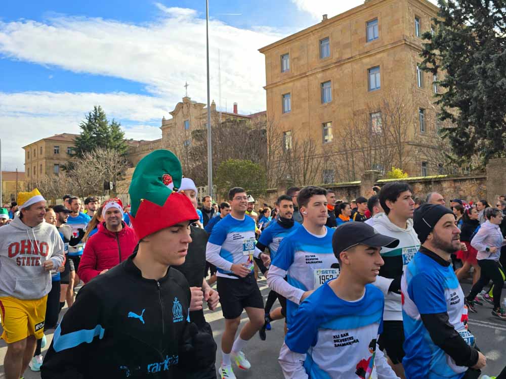 El atletismo y la tradición se han vuelto a unir en la celebración de la San Silvestre Salmantina. Una prueba consolidada en el calendario, organizada por el Club Deportivo Padre Basabe, que se vive en las calle con miles de personas que animan el paso de los altletas. El Paseo de San Antonio, junto al Colegio San Estanislao de Kostka, ha vuelto a ser el punto de salida y llegada de la tradicional prueba en la que han participado más de 7.000 atletas. Los primeros en disputar la prueba han sido los corredores de las categorías inferiores y posteriormente ha llegado el turno de la prueba absoluta.