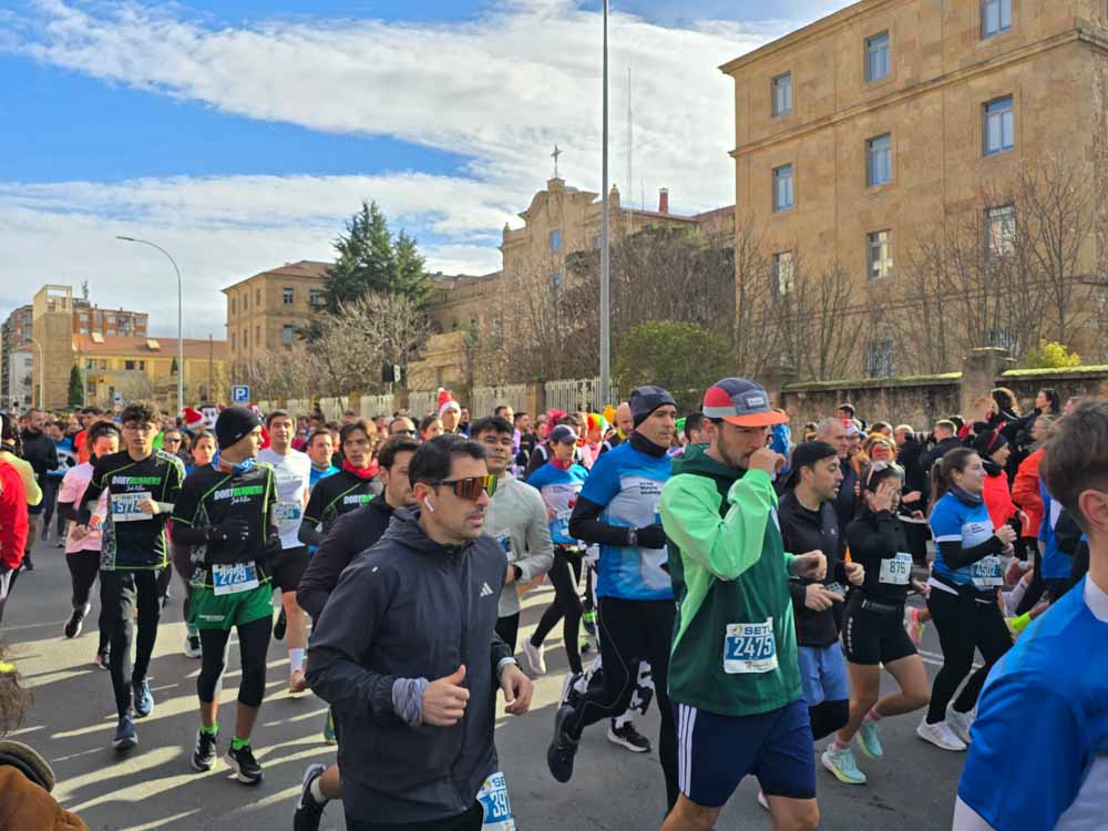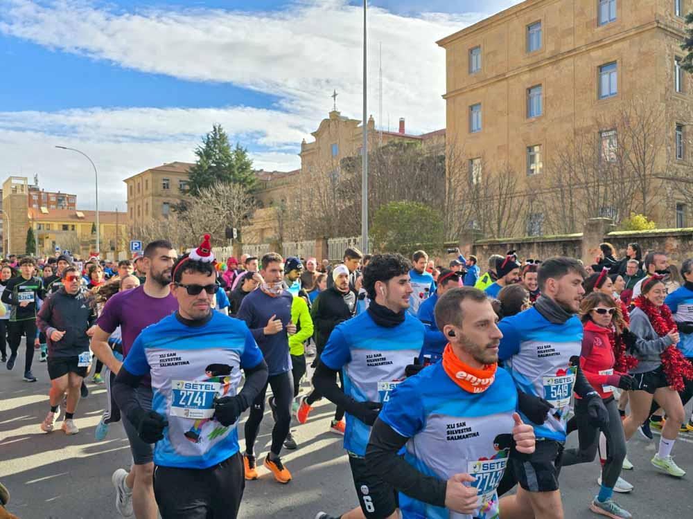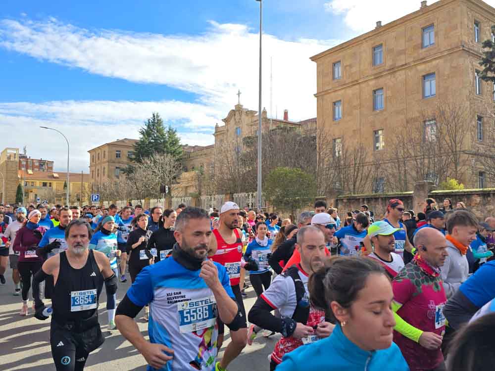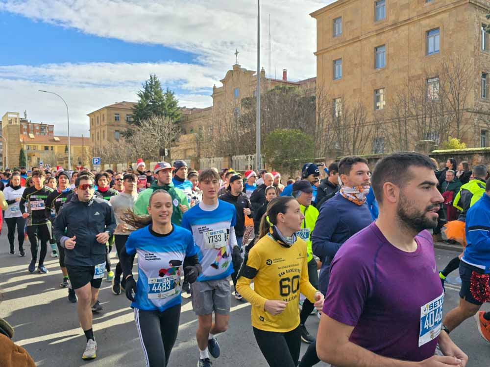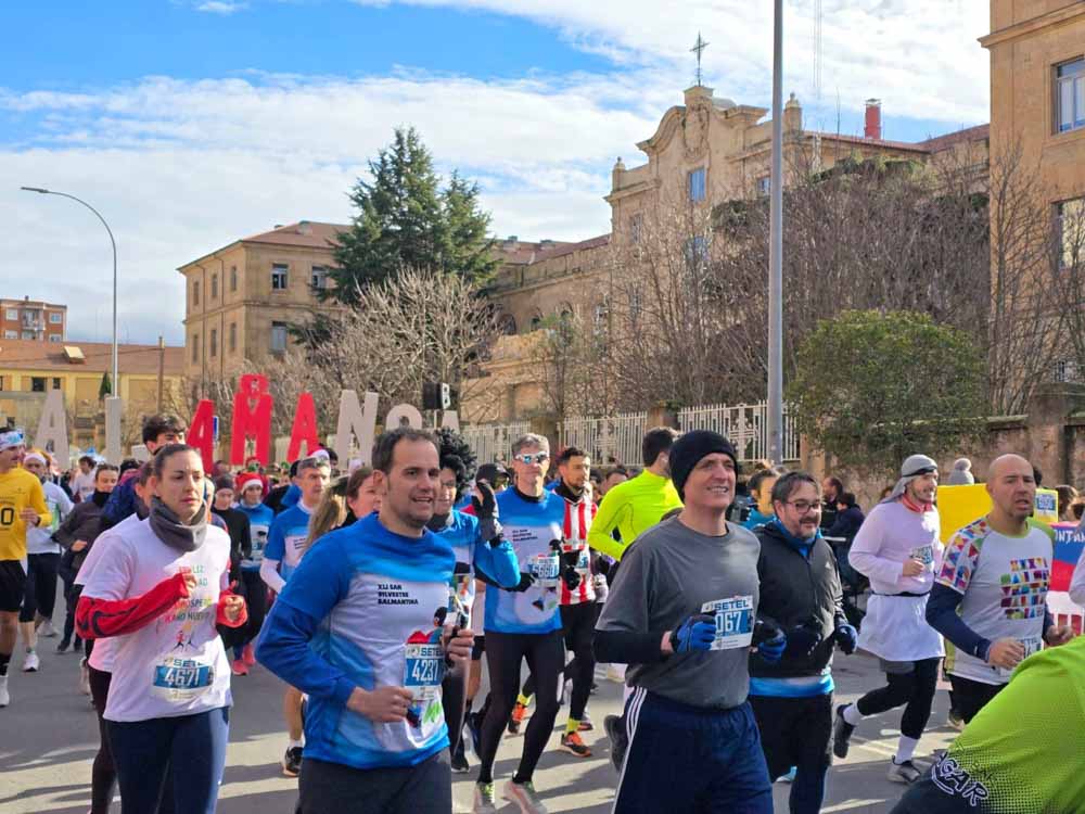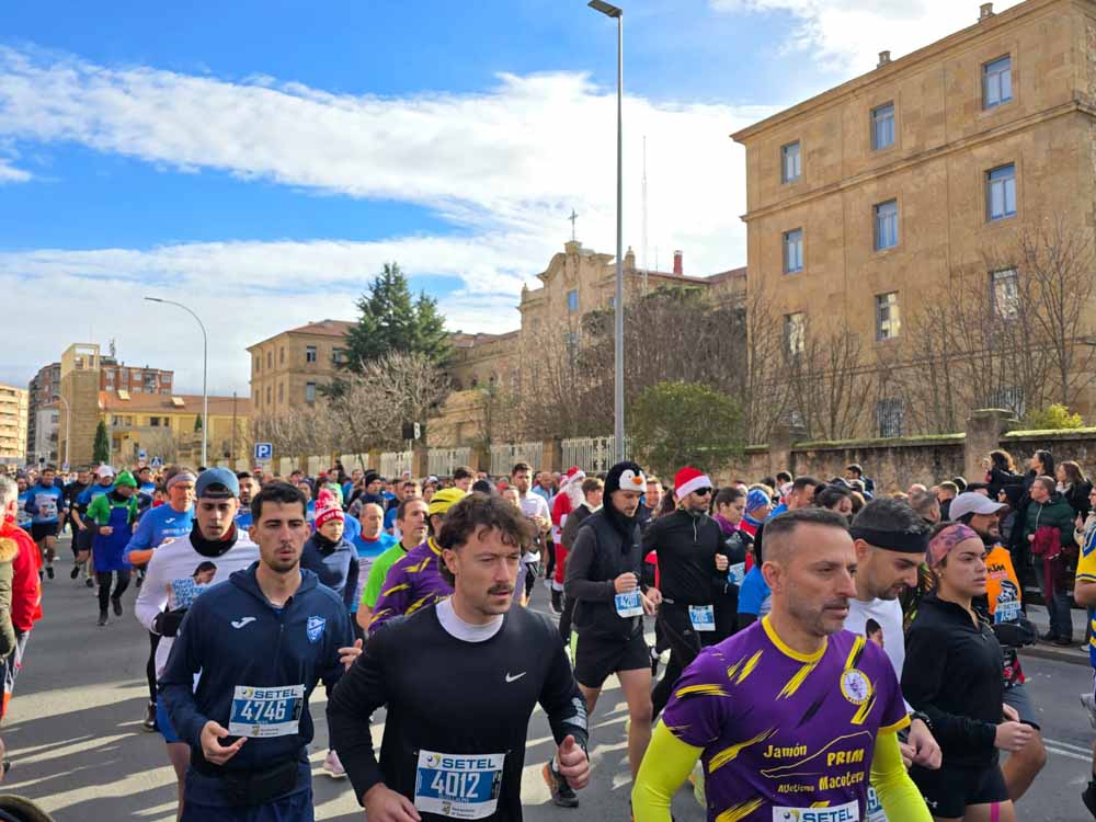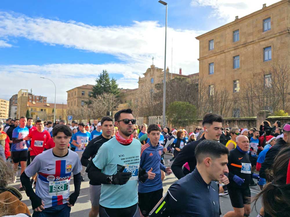 El atletismo y la tradición se han vuelto a unir en la celebración de la San Silvestre Salmantina. Una prueba consolidada en el calendario, organizada por el Club Deportivo Padre Basabe, que se vive en las calle con miles de personas que animan el paso de los altletas. El Paseo de San Antonio, junto al Colegio San Estanislao de Kostka, ha vuelto a ser el punto de salida y llegada de la tradicional prueba en la que han participado más de 7.000 atletas. Los primeros en disputar la prueba han sido los corredores de las categorías inferiores y posteriormente ha llegado el turno de la prueba absoluta.