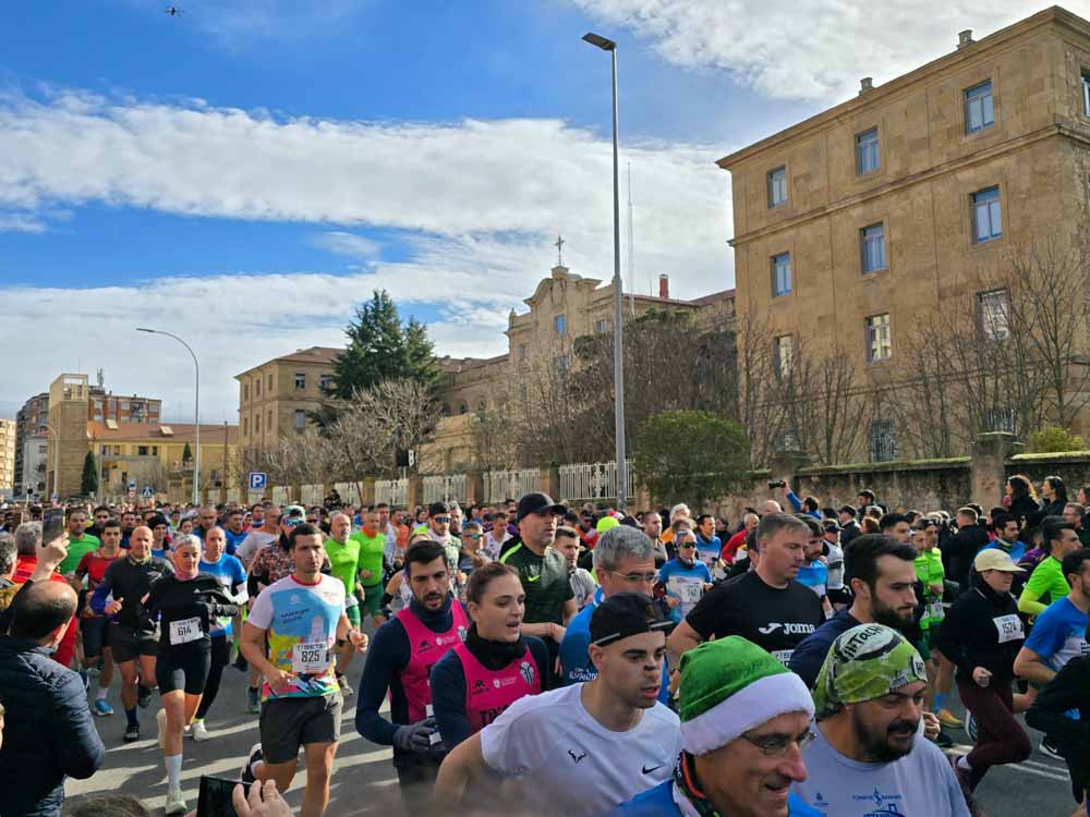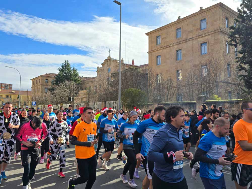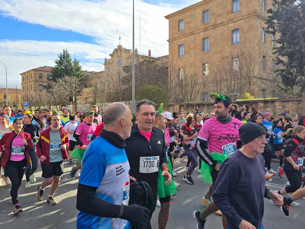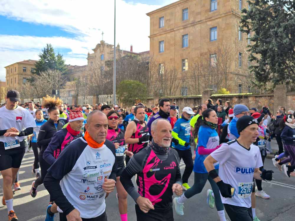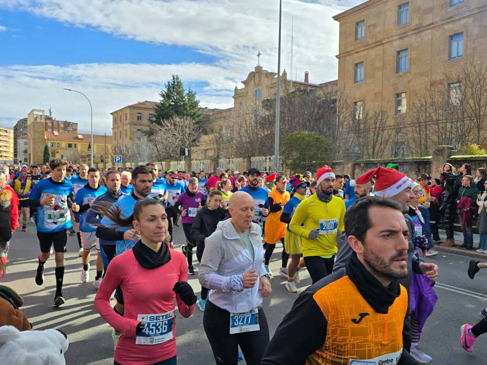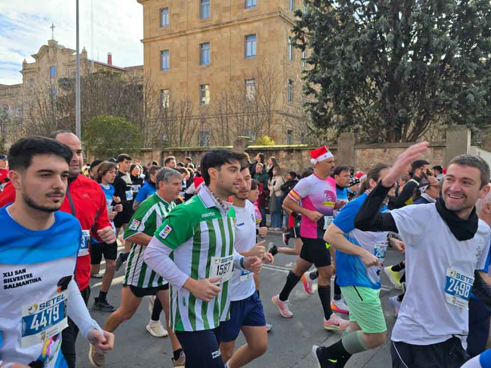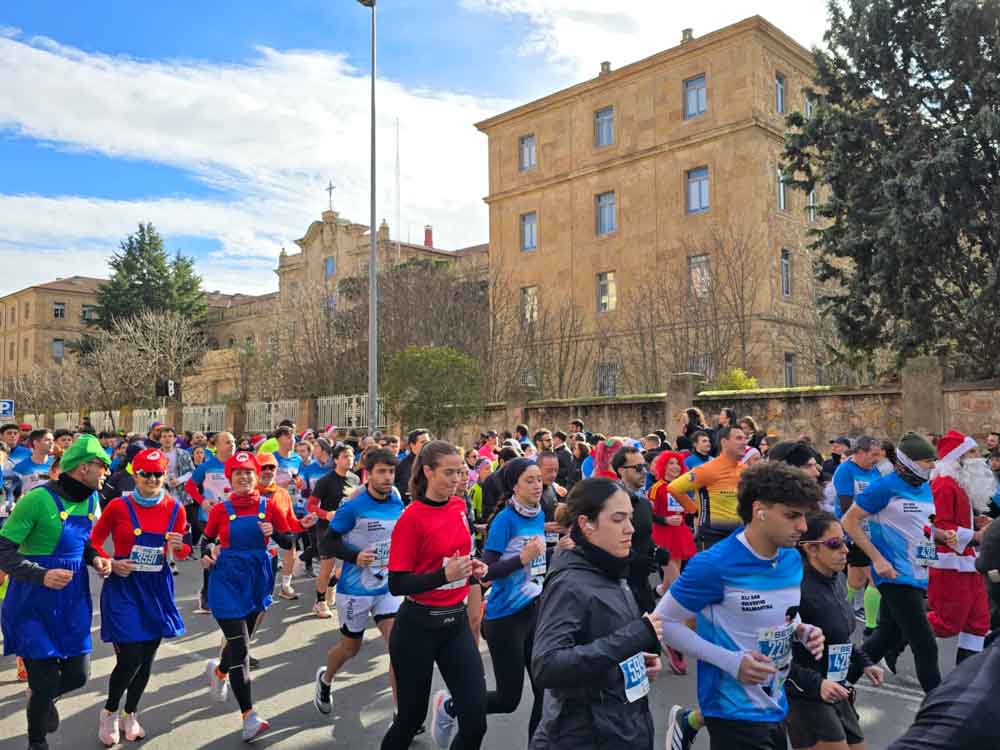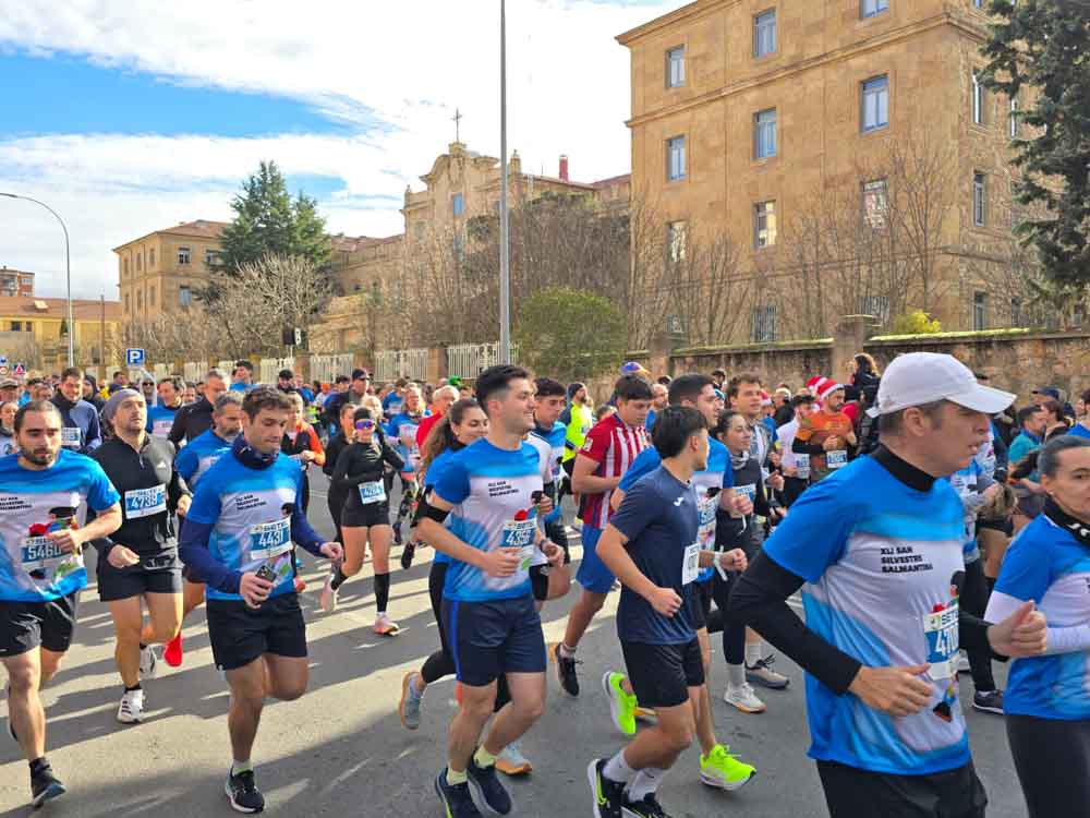 El atletismo y la tradición se han vuelto a unir en la celebración de la San Silvestre Salmantina. Una prueba consolidada en el calendario, organizada por el Club Deportivo Padre Basabe, que se vive en las calle con miles de personas que animan el paso de los altletas. El Paseo de San Antonio, junto al Colegio San Estanislao de Kostka, ha vuelto a ser el punto de salida y llegada de la tradicional prueba en la que han participado más de 7.000 atletas. Los primeros en disputar la prueba han sido los corredores de las categorías inferiores y posteriormente ha llegado el turno de la prueba absoluta.