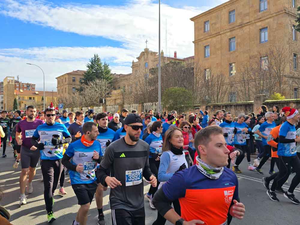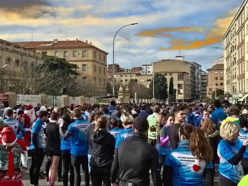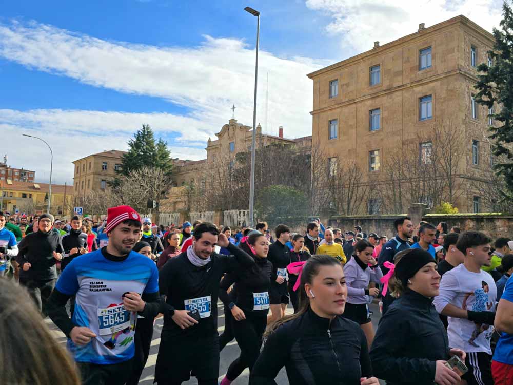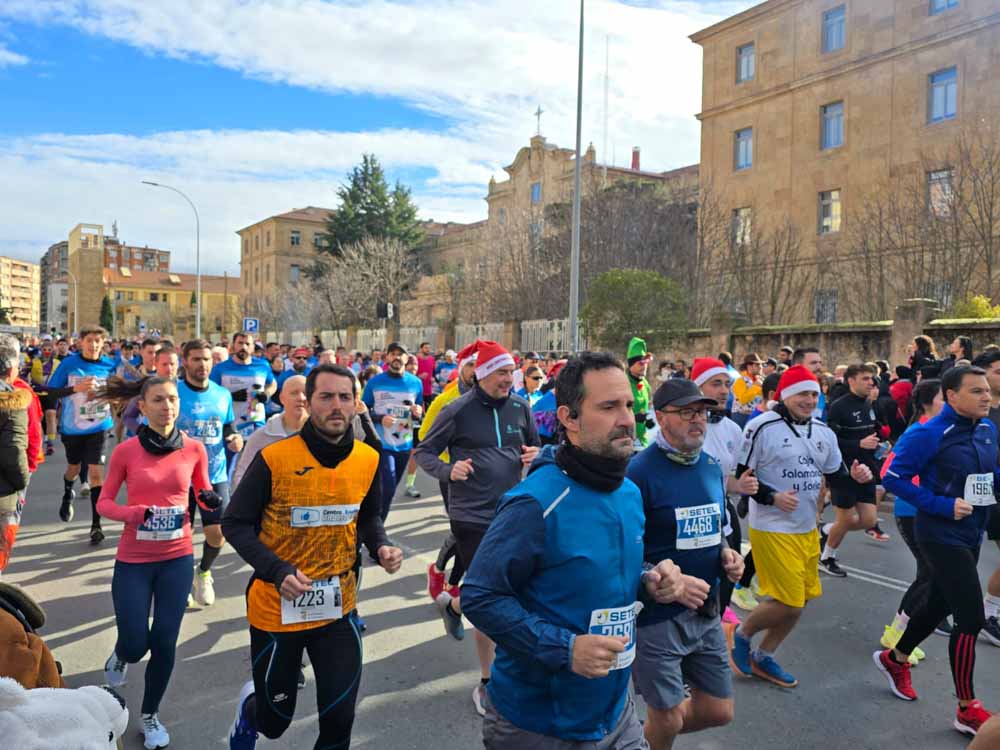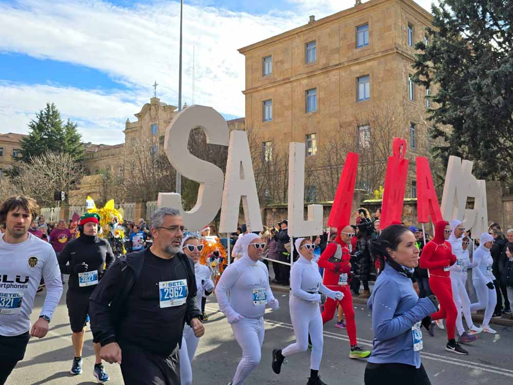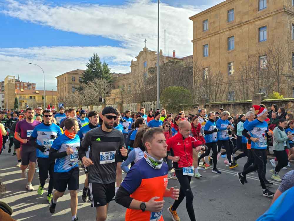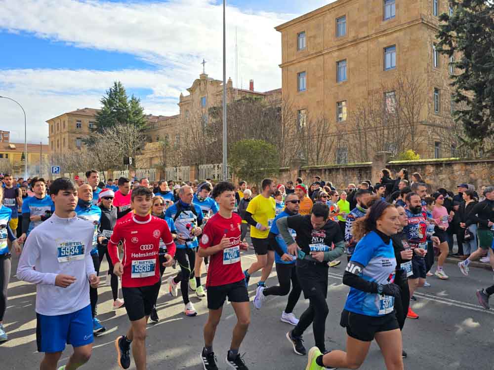 El atletismo y la tradición se han vuelto a unir en la celebración de la San Silvestre Salmantina. Una prueba consolidada en el calendario, organizada por el Club Deportivo Padre Basabe, que se vive en las calle con miles de personas que animan el paso de los altletas. El Paseo de San Antonio, junto al Colegio San Estanislao de Kostka, ha vuelto a ser el punto de salida y llegada de la tradicional prueba en la que han participado más de 7.000 atletas. Los primeros en disputar la prueba han sido los corredores de las categorías inferiores y posteriormente ha llegado el turno de la prueba absoluta.