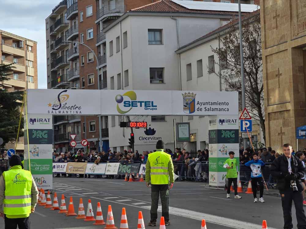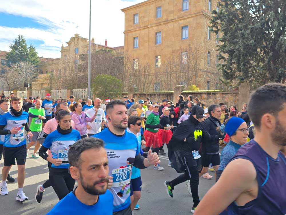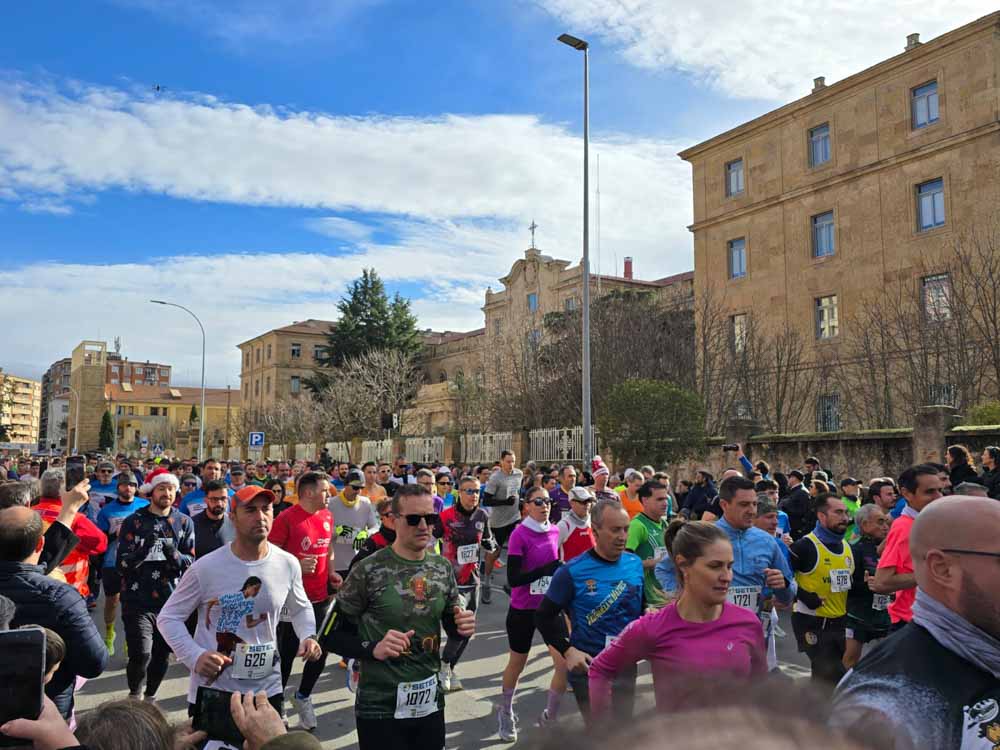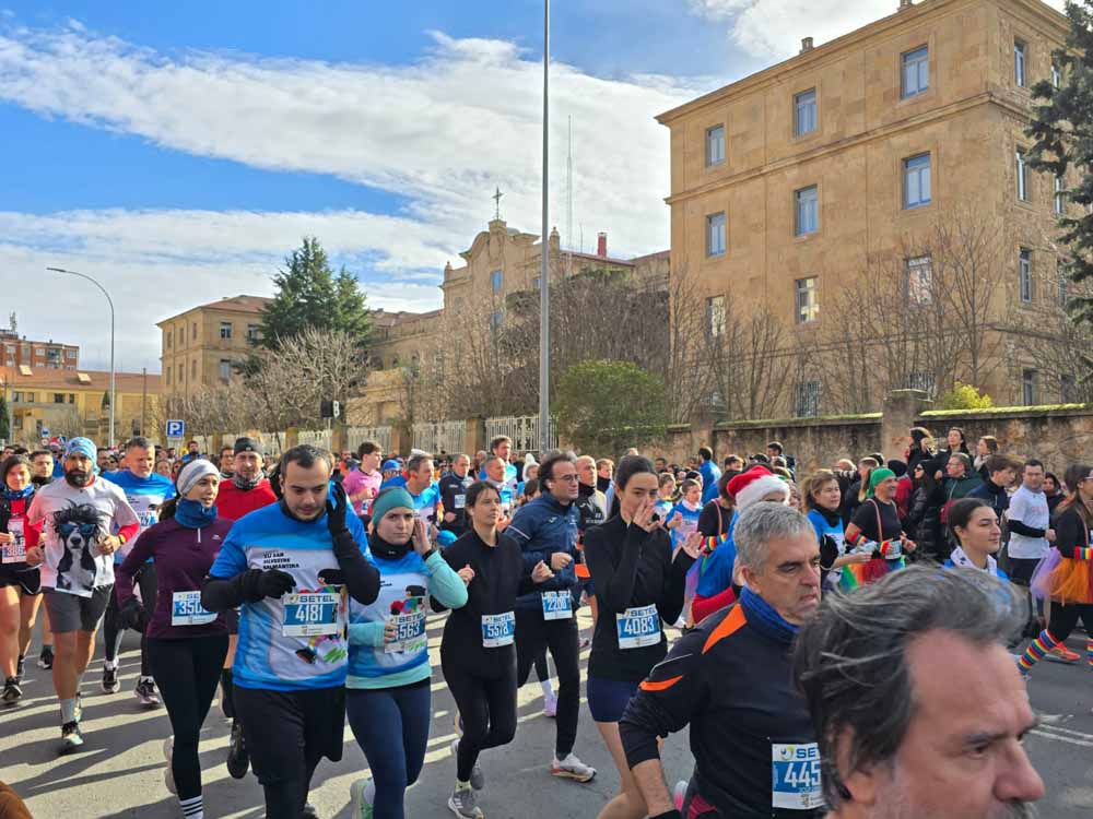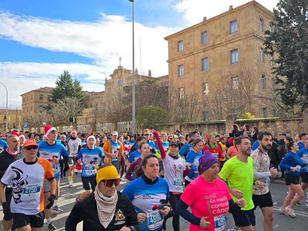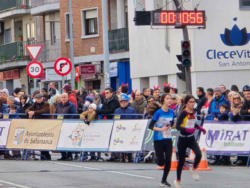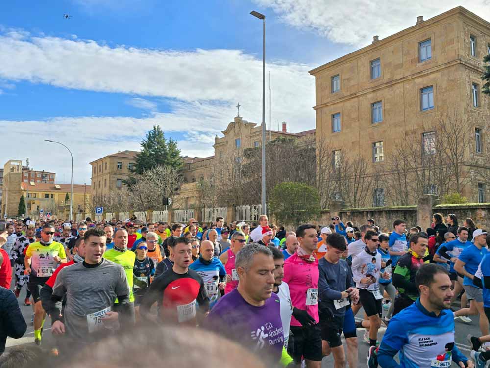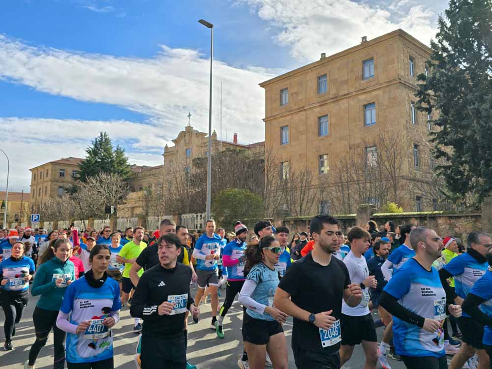 El atletismo y la tradición se han vuelto a unir en la celebración de la San Silvestre Salmantina. Una prueba consolidada en el calendario, organizada por el Club Deportivo Padre Basabe, que se vive en las calle con miles de personas que animan el paso de los altletas. El Paseo de San Antonio, junto al Colegio San Estanislao de Kostka, ha vuelto a ser el punto de salida y llegada de la tradicional prueba en la que han participado más de 7.000 atletas. Los primeros en disputar la prueba han sido los corredores de las categorías inferiores y posteriormente ha llegado el turno de la prueba absoluta.