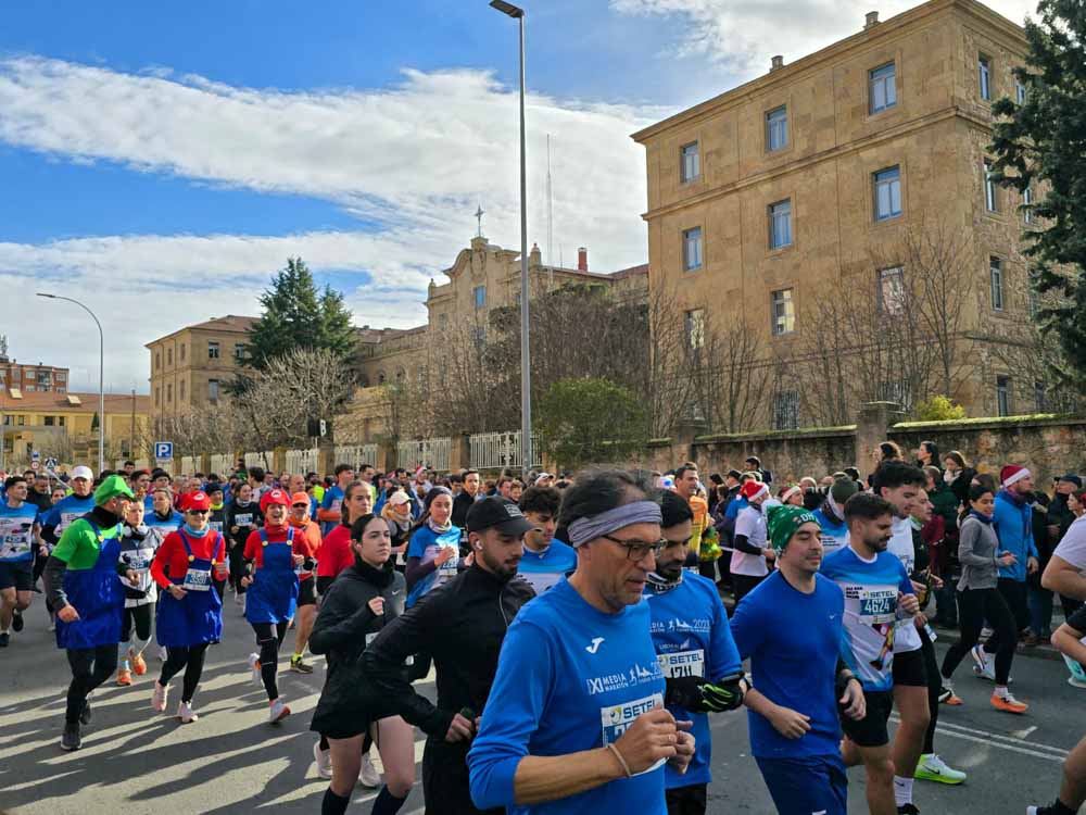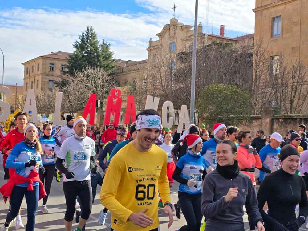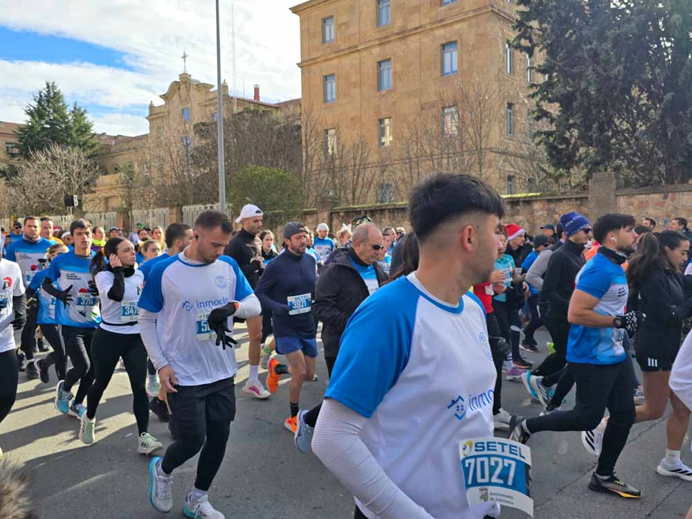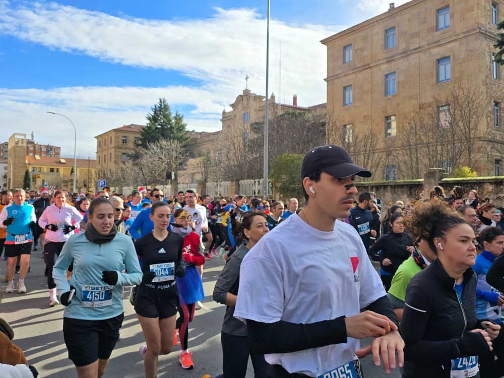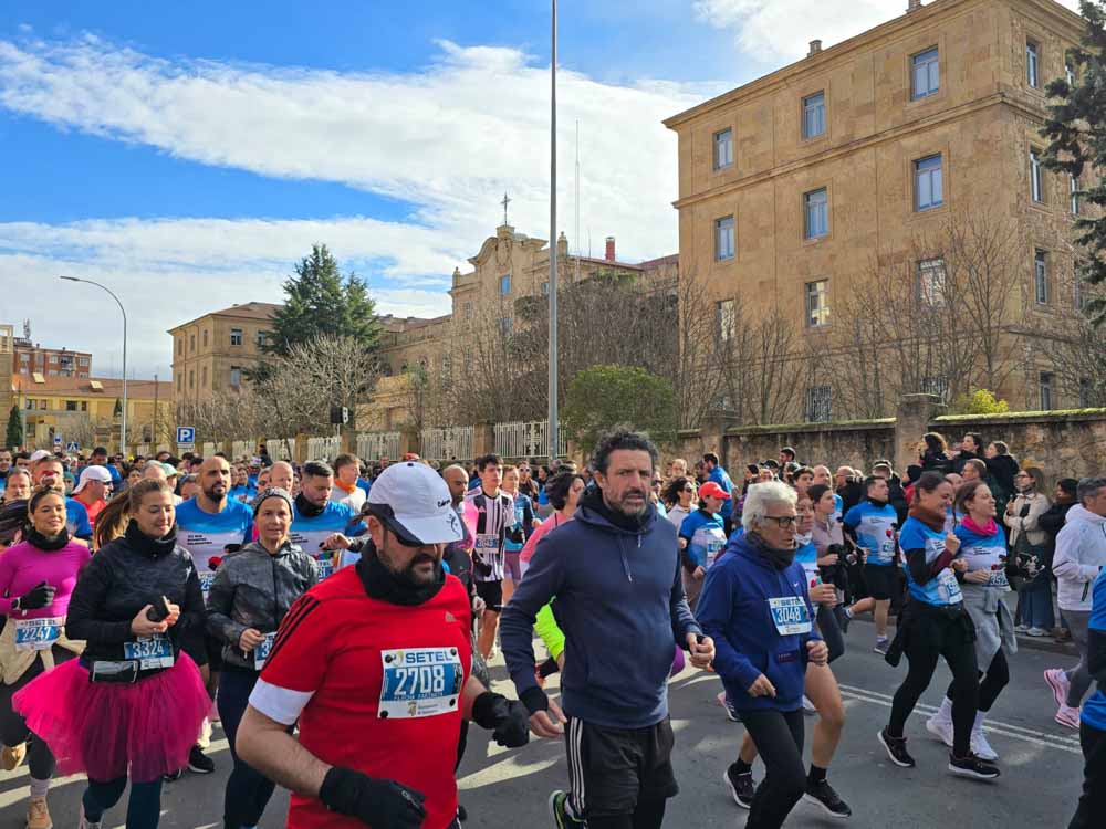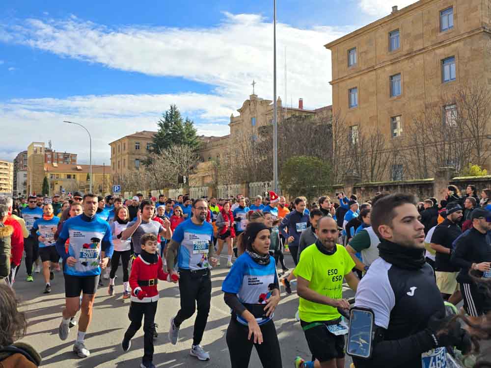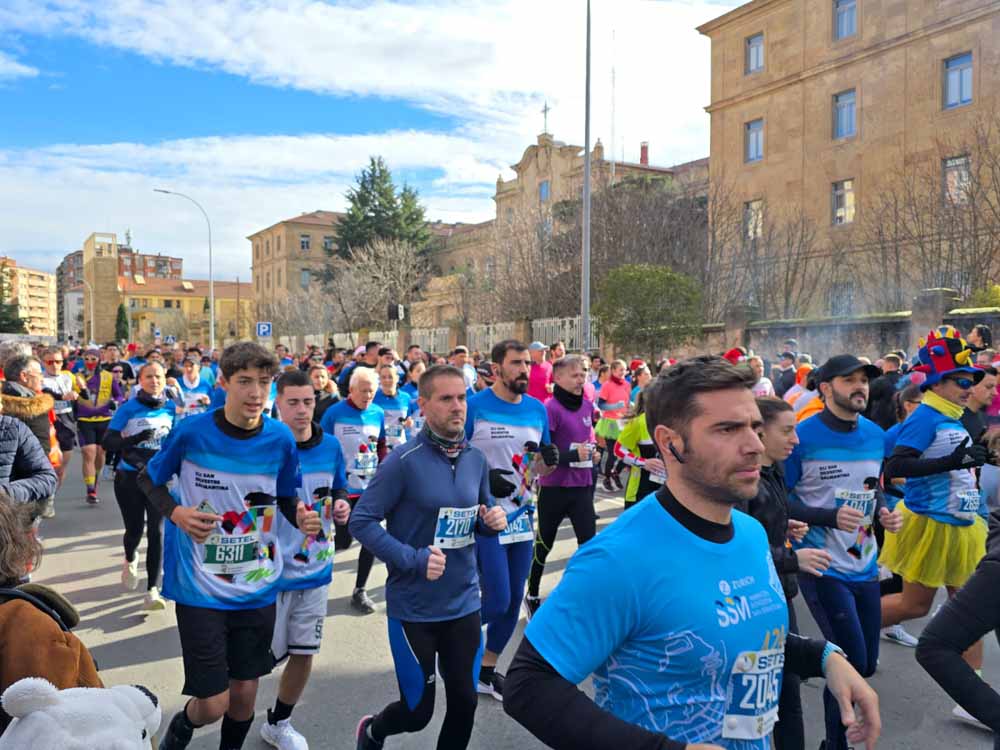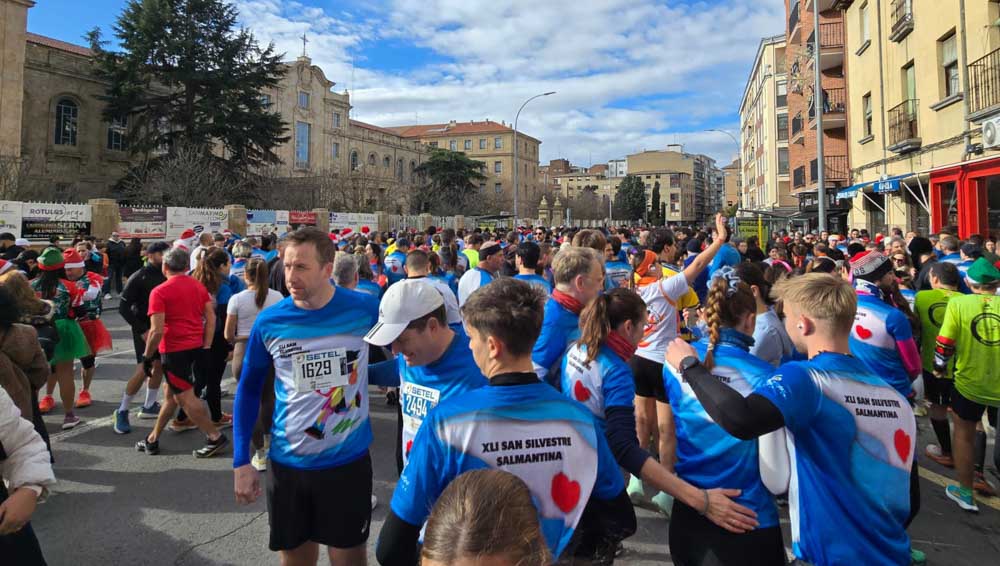 El atletismo y la tradición se han vuelto a unir en la celebración de la San Silvestre Salmantina. Una prueba consolidada en el calendario, organizada por el Club Deportivo Padre Basabe, que se vive en las calle con miles de personas que animan el paso de los altletas. El Paseo de San Antonio, junto al Colegio San Estanislao de Kostka, ha vuelto a ser el punto de salida y llegada de la tradicional prueba en la que han participado más de 7.000 atletas. Los primeros en disputar la prueba han sido los corredores de las categorías inferiores y posteriormente ha llegado el turno de la prueba absoluta.