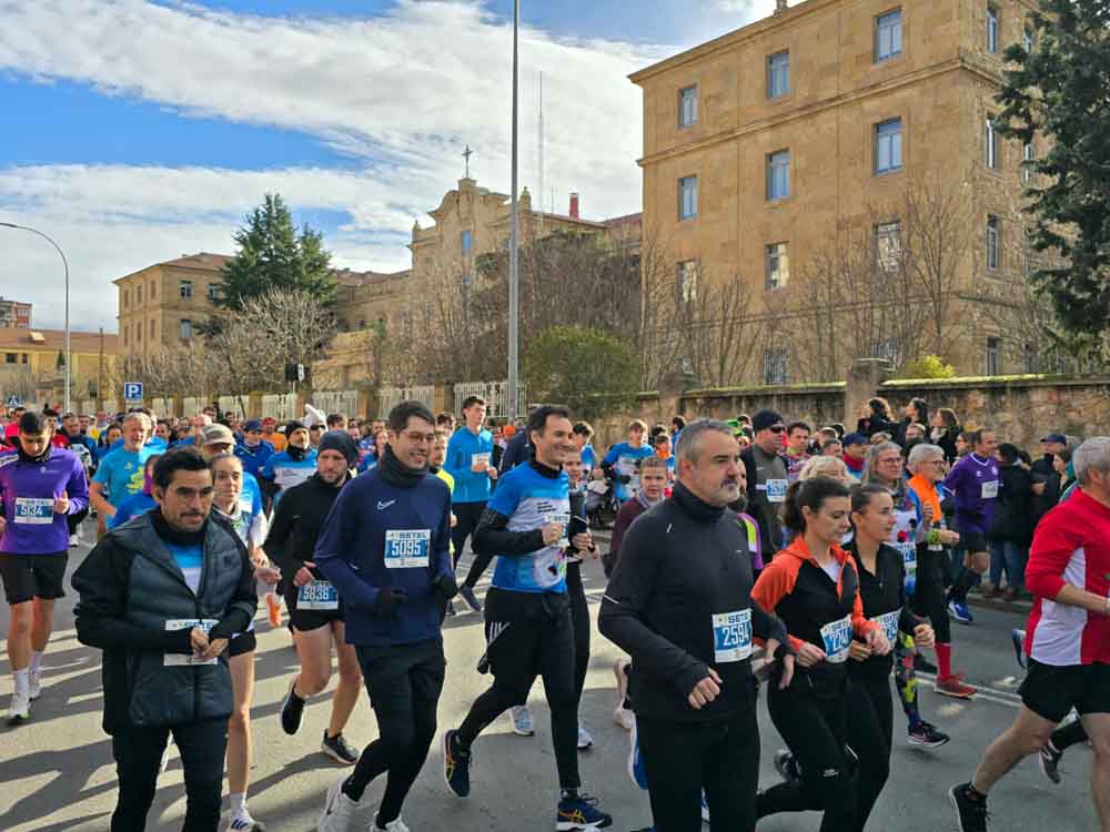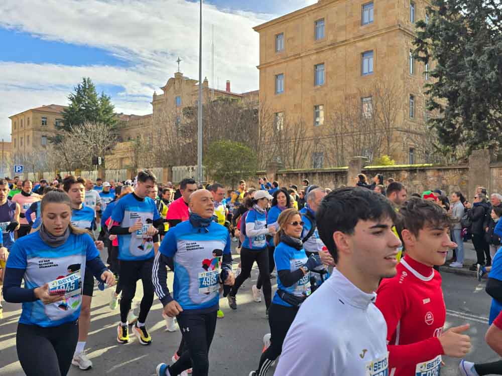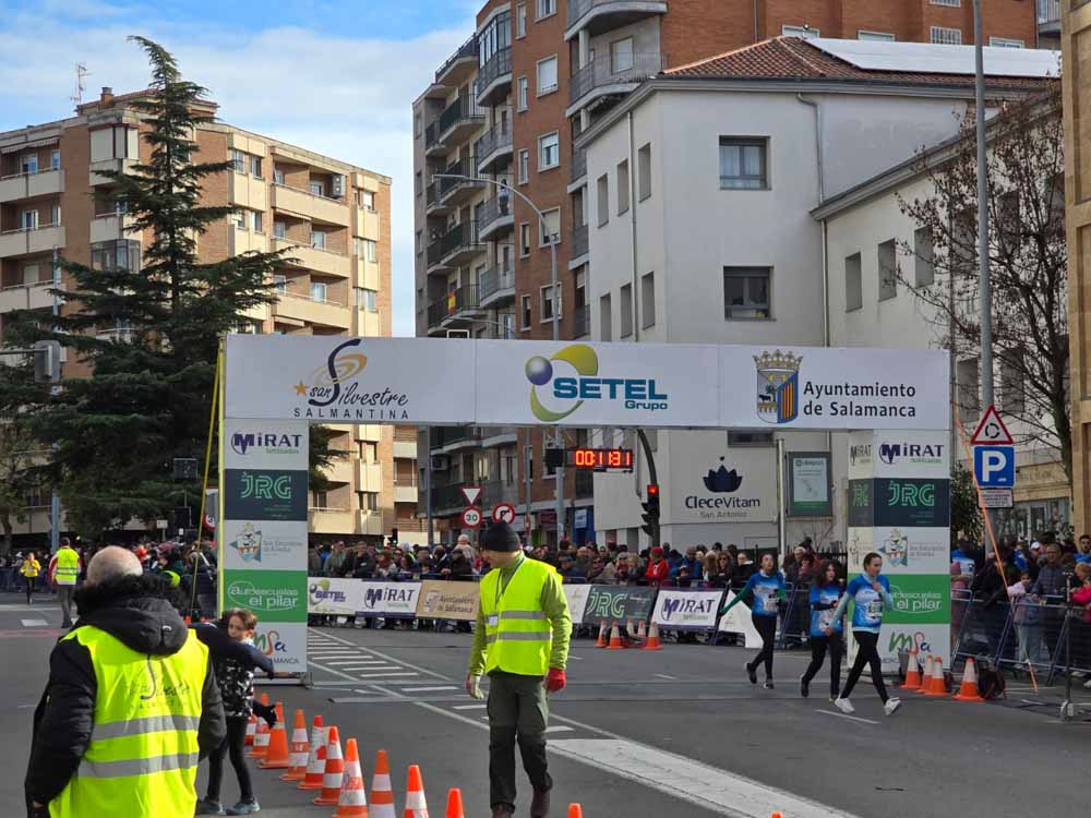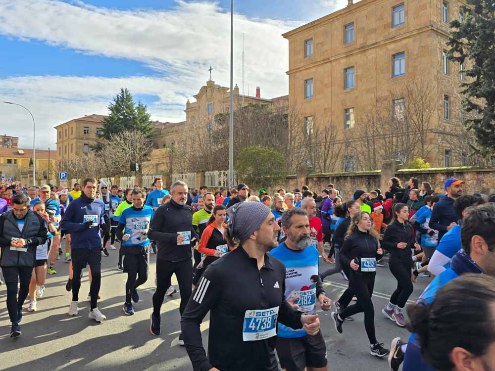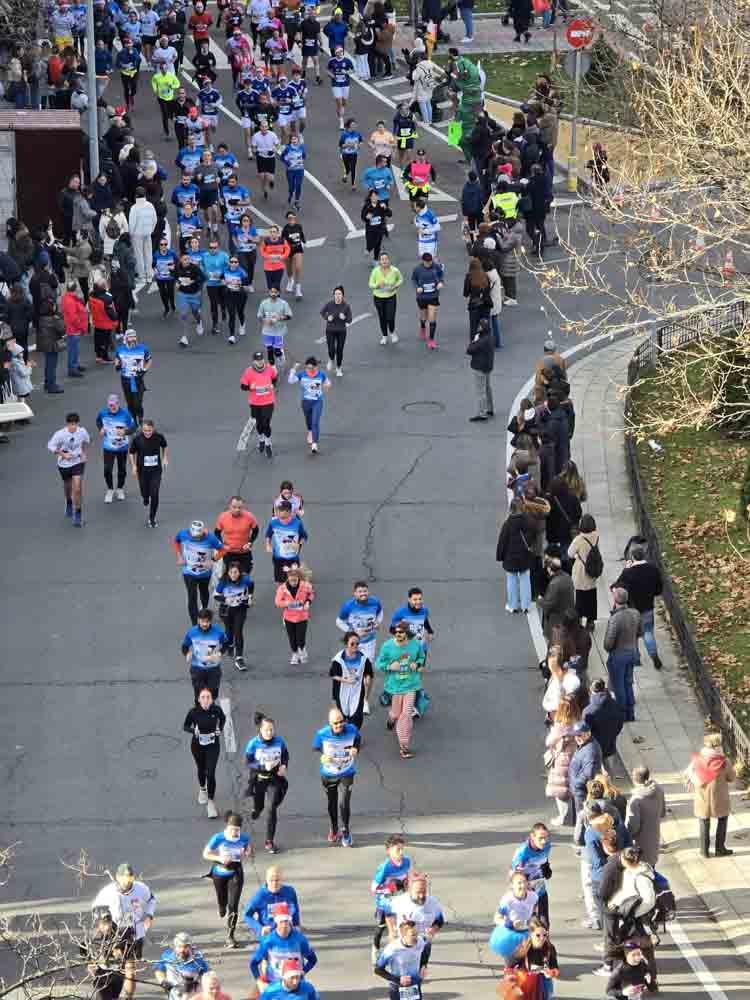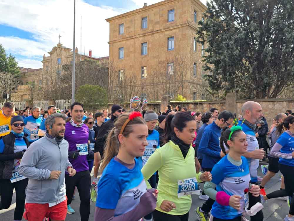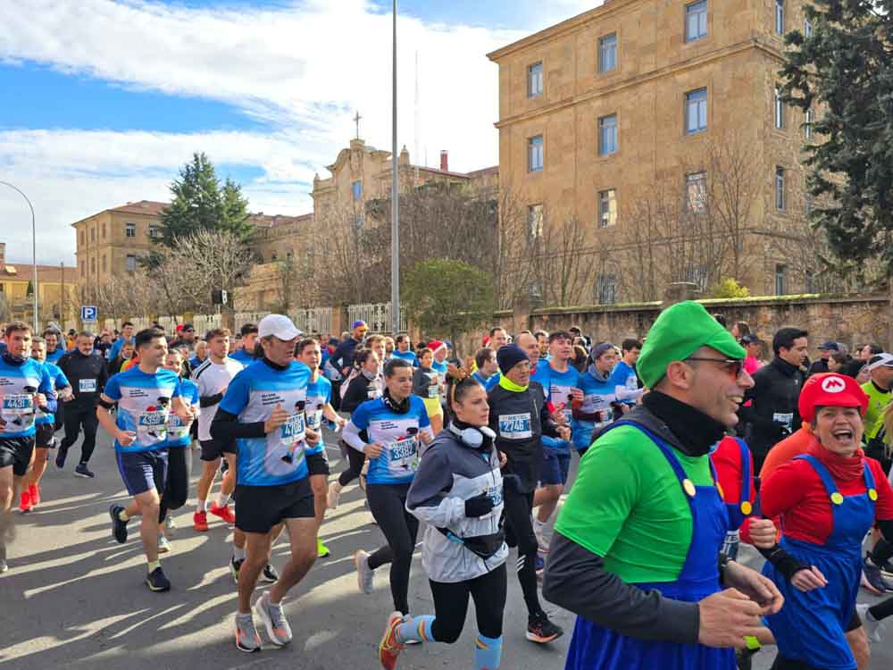 El atletismo y la tradición se han vuelto a unir en la celebración de la San Silvestre Salmantina. Una prueba consolidada en el calendario, organizada por el Club Deportivo Padre Basabe, que se vive en las calle con miles de personas que animan el paso de los altletas. El Paseo de San Antonio, junto al Colegio San Estanislao de Kostka, ha vuelto a ser el punto de salida y llegada de la tradicional prueba en la que han participado más de 7.000 atletas. Los primeros en disputar la prueba han sido los corredores de las categorías inferiores y posteriormente ha llegado el turno de la prueba absoluta.